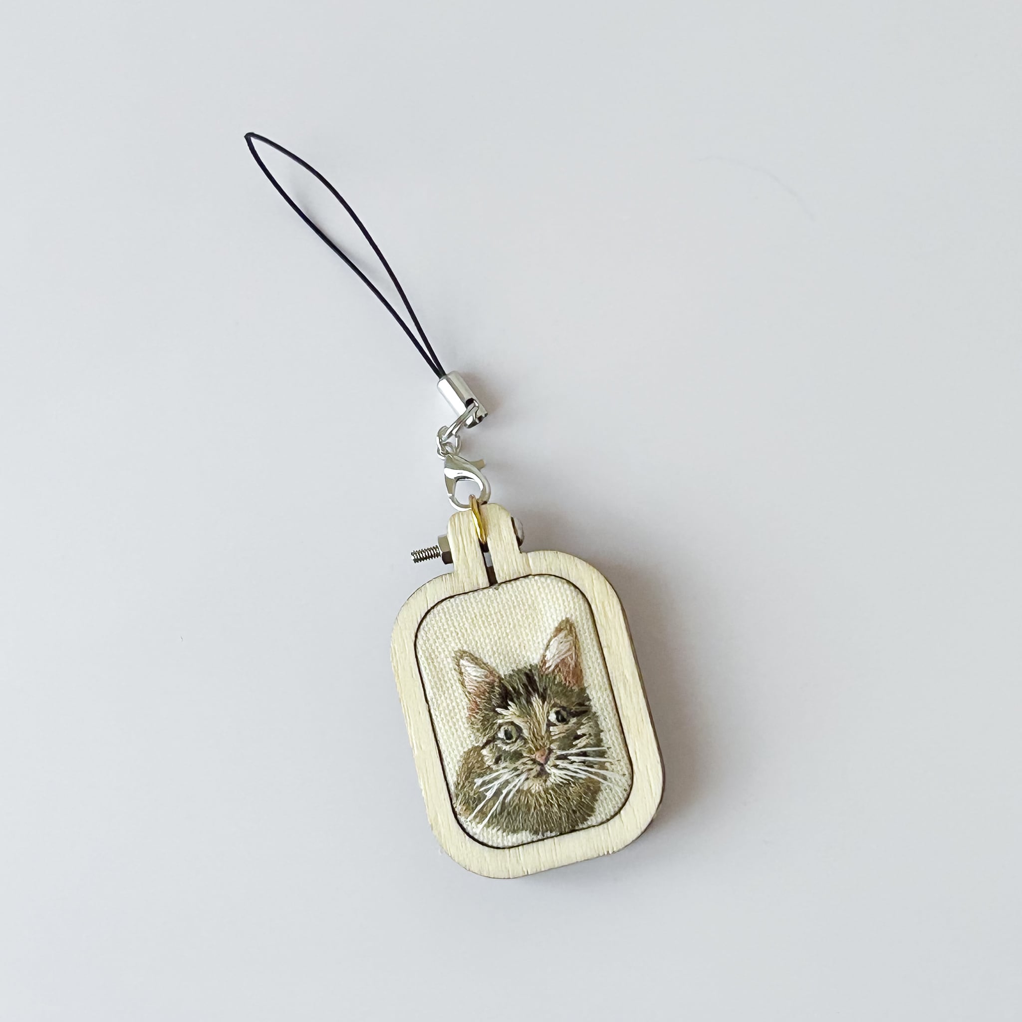 布地に刺繍を施し、木製のミニ刺繍枠で仕上げております。