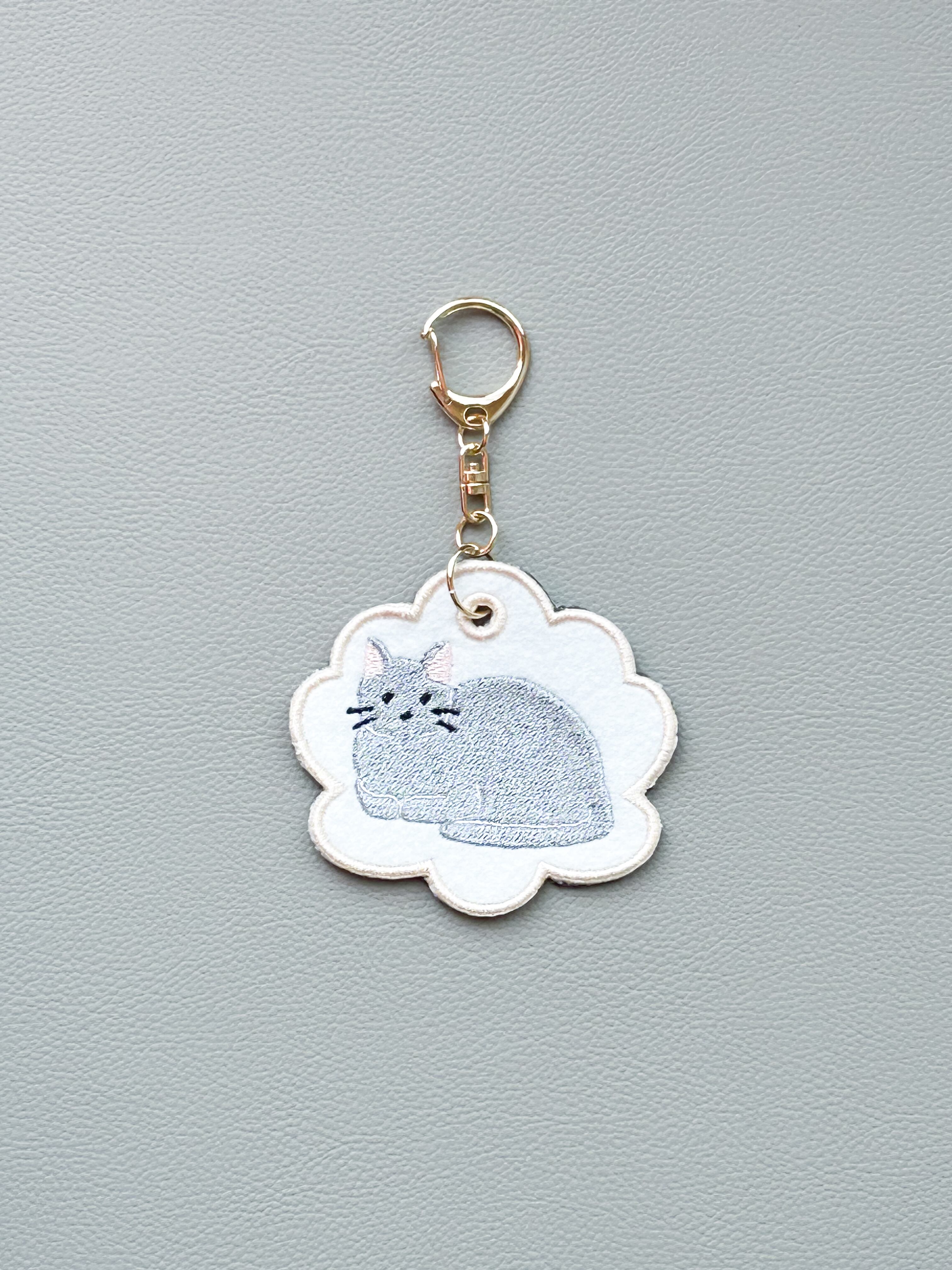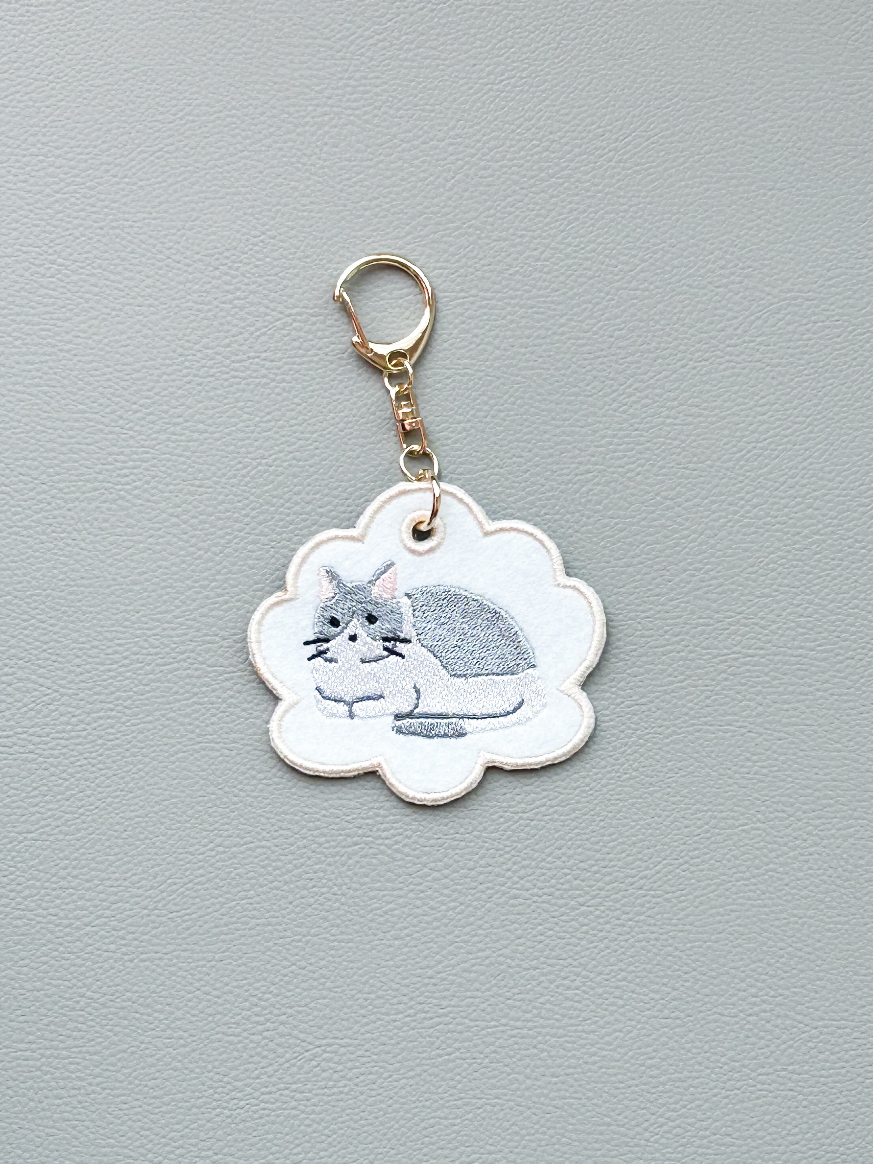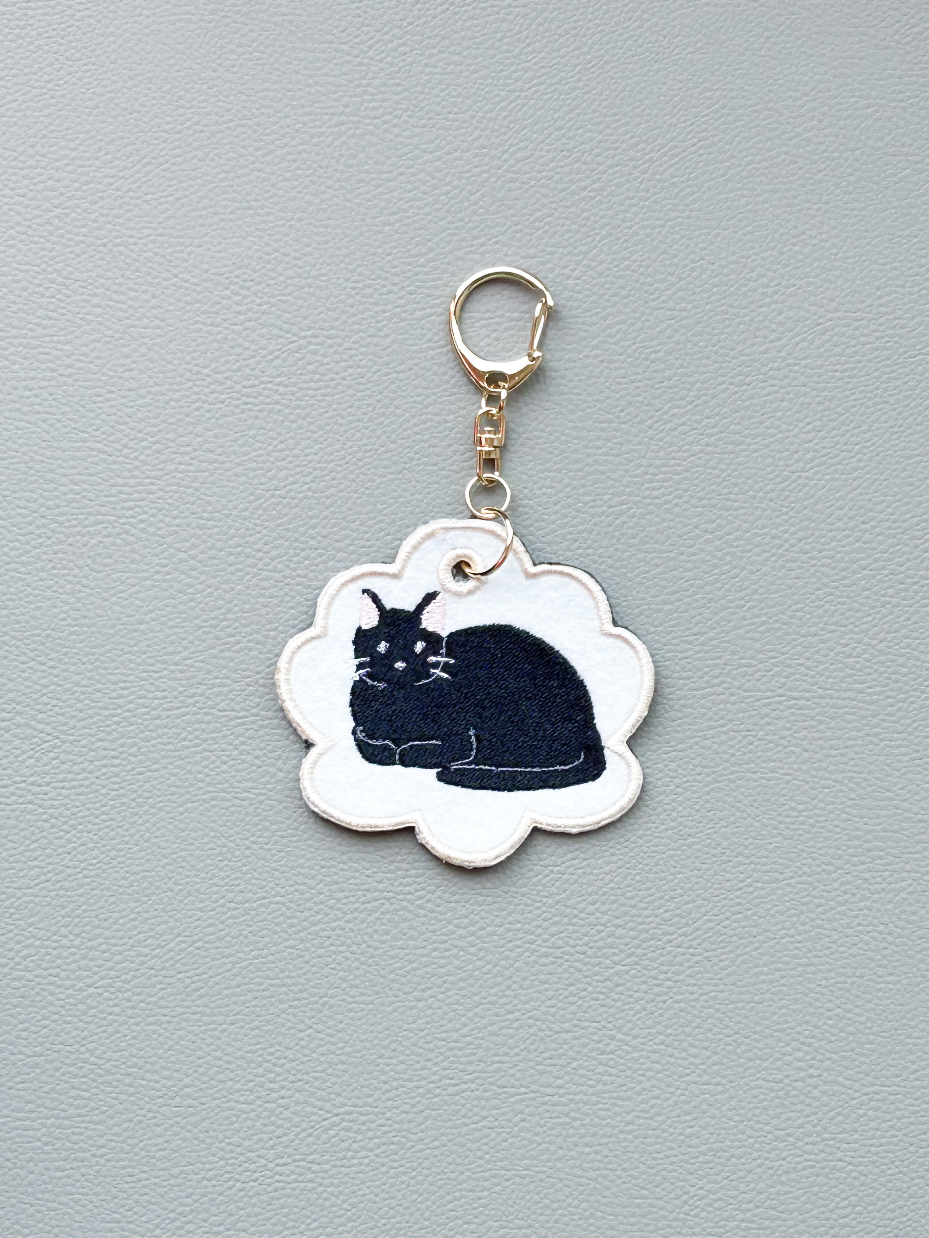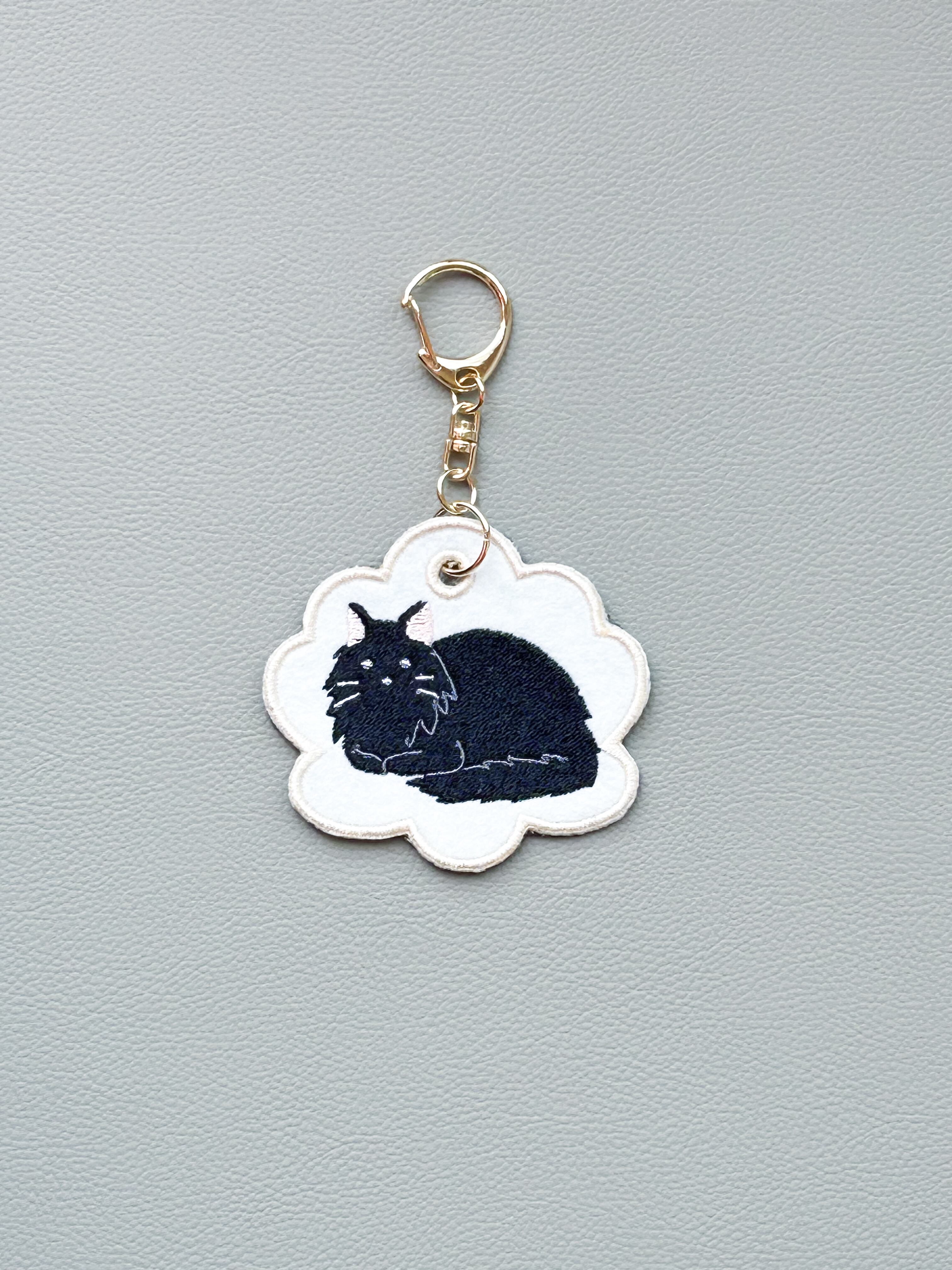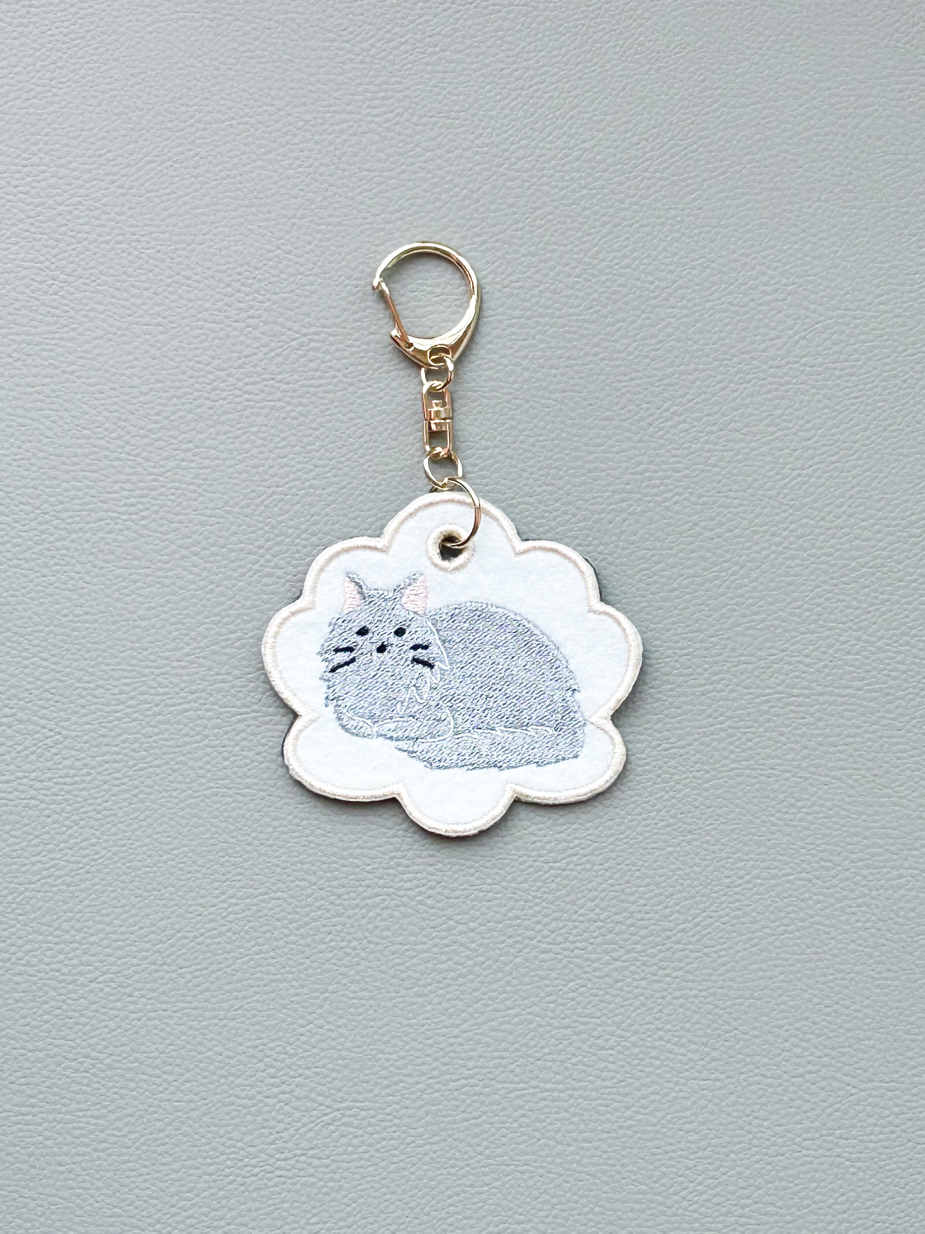 猫のモチーフを刺繍したシルエットキーホルダーです。