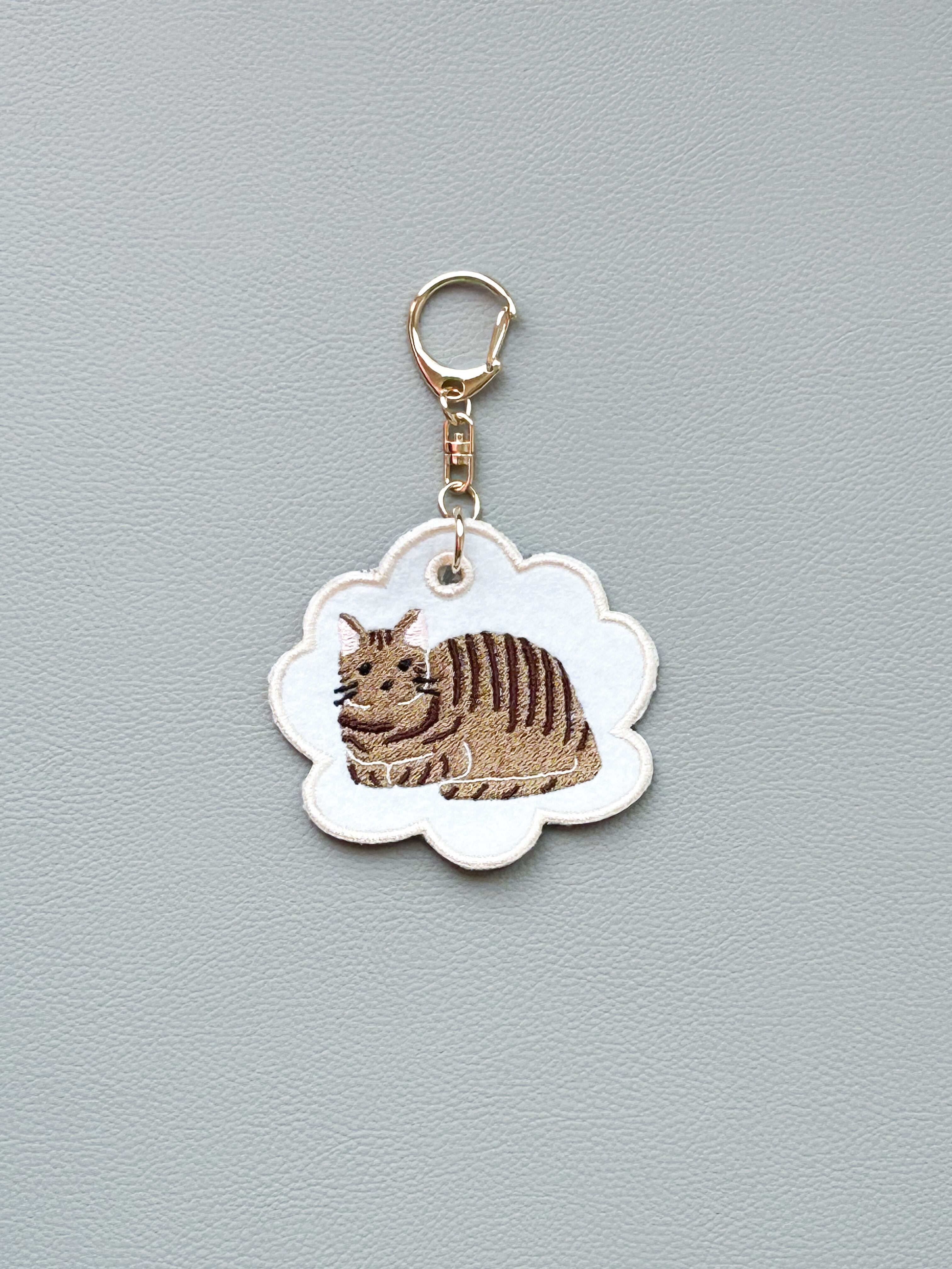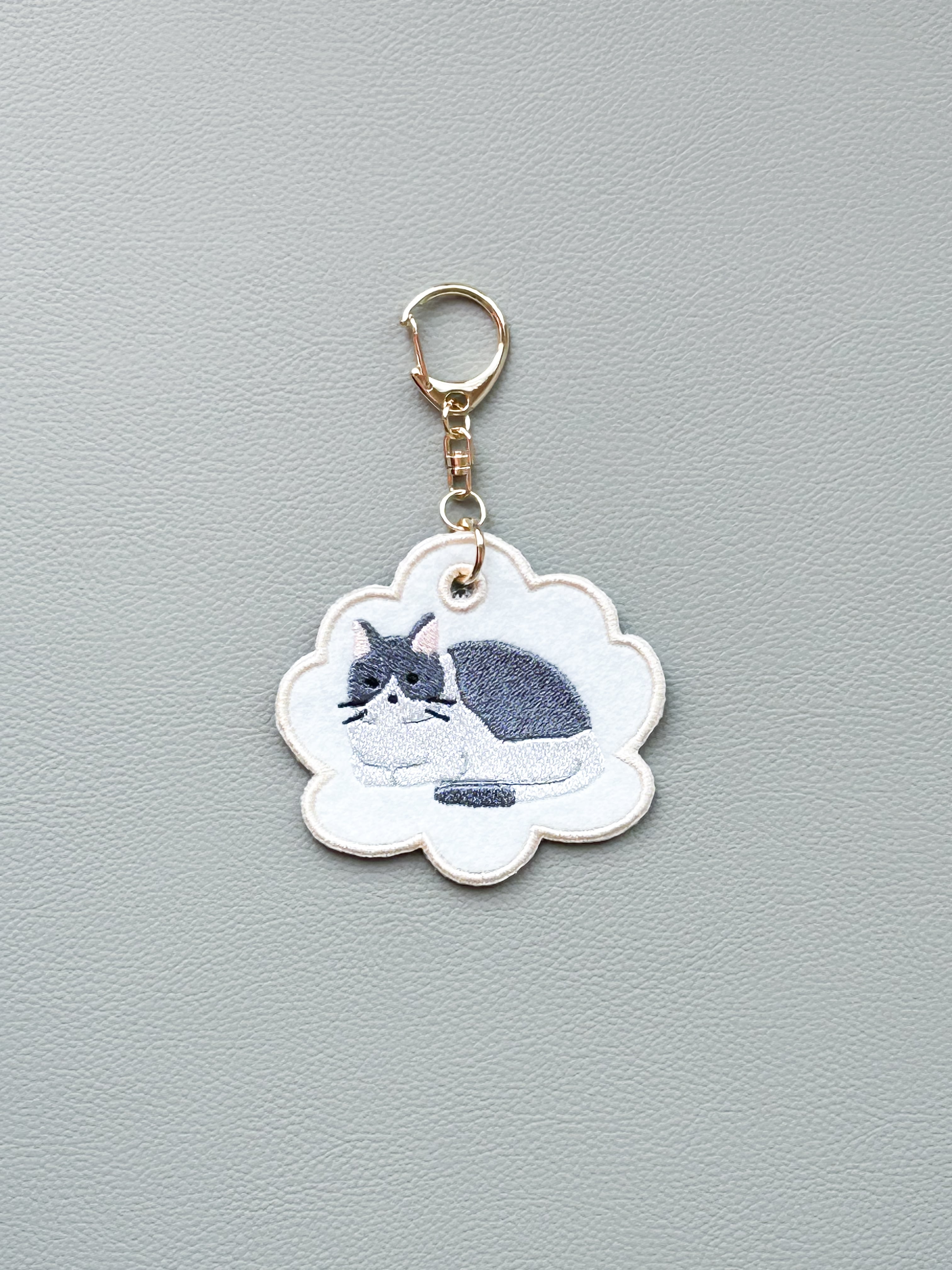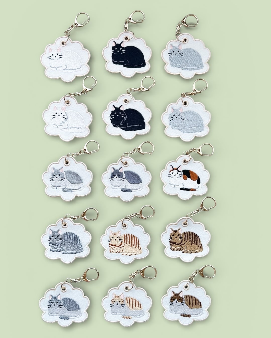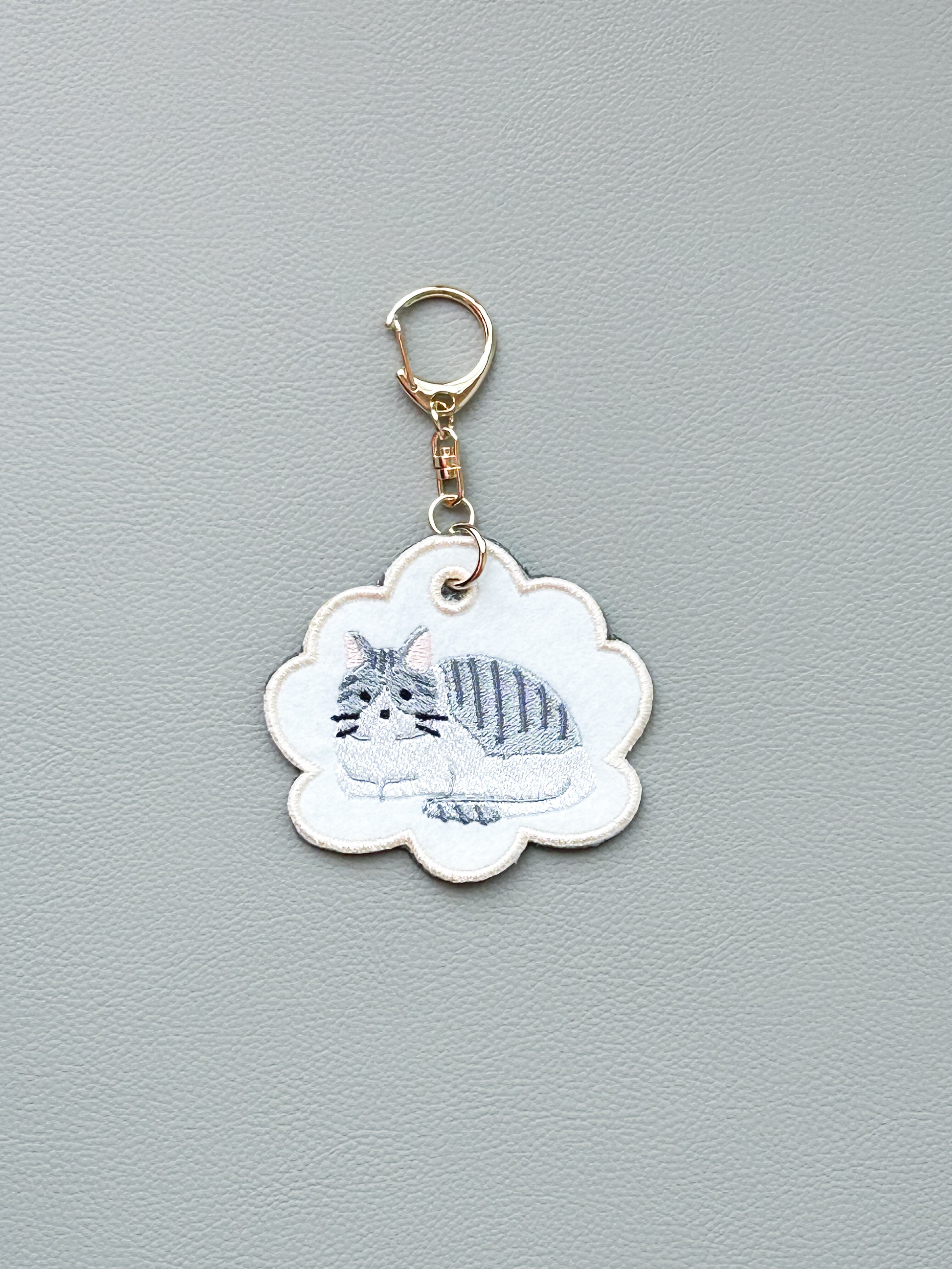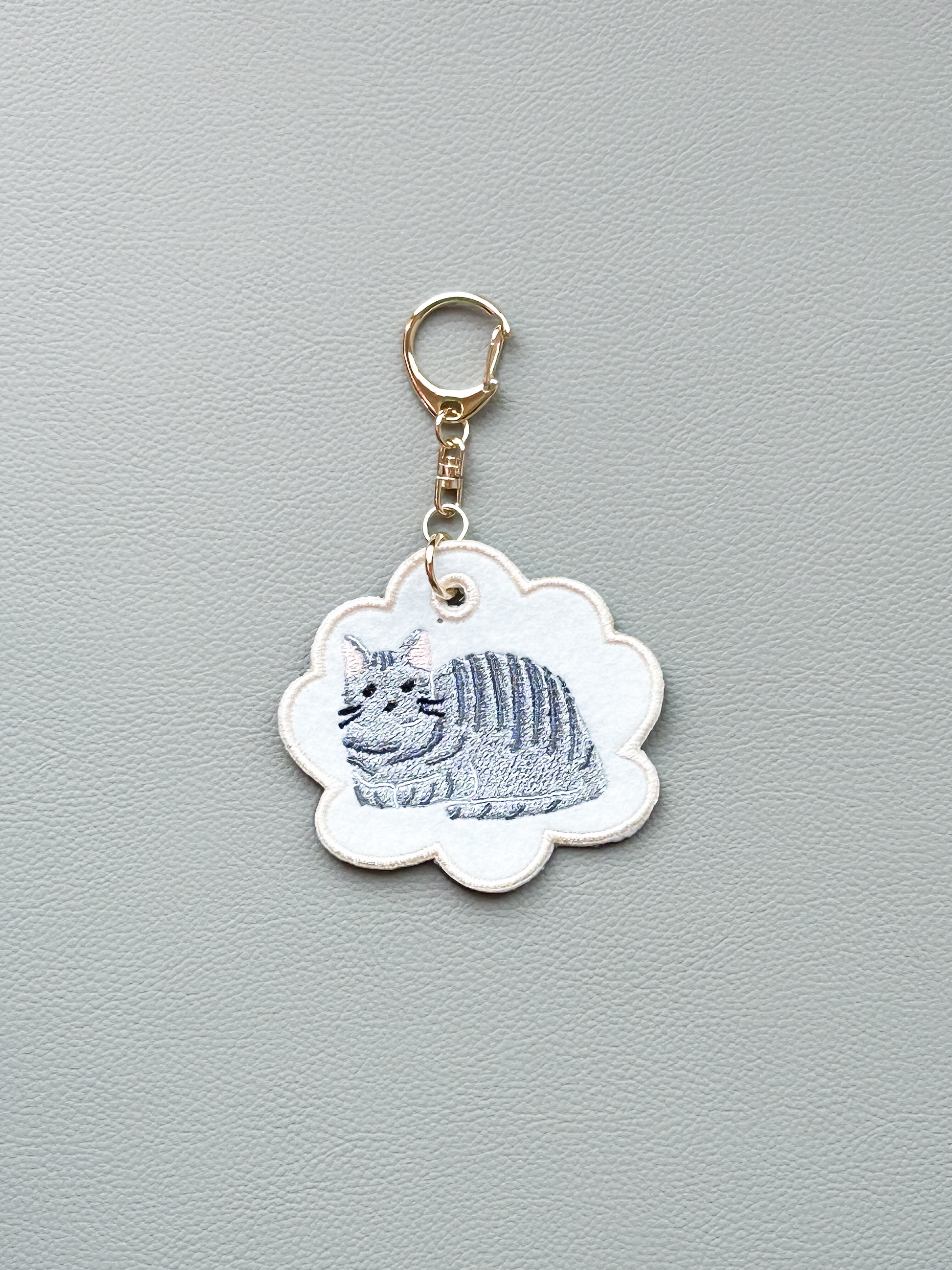猫のモチーフを刺繍したシルエットキーホルダーです。