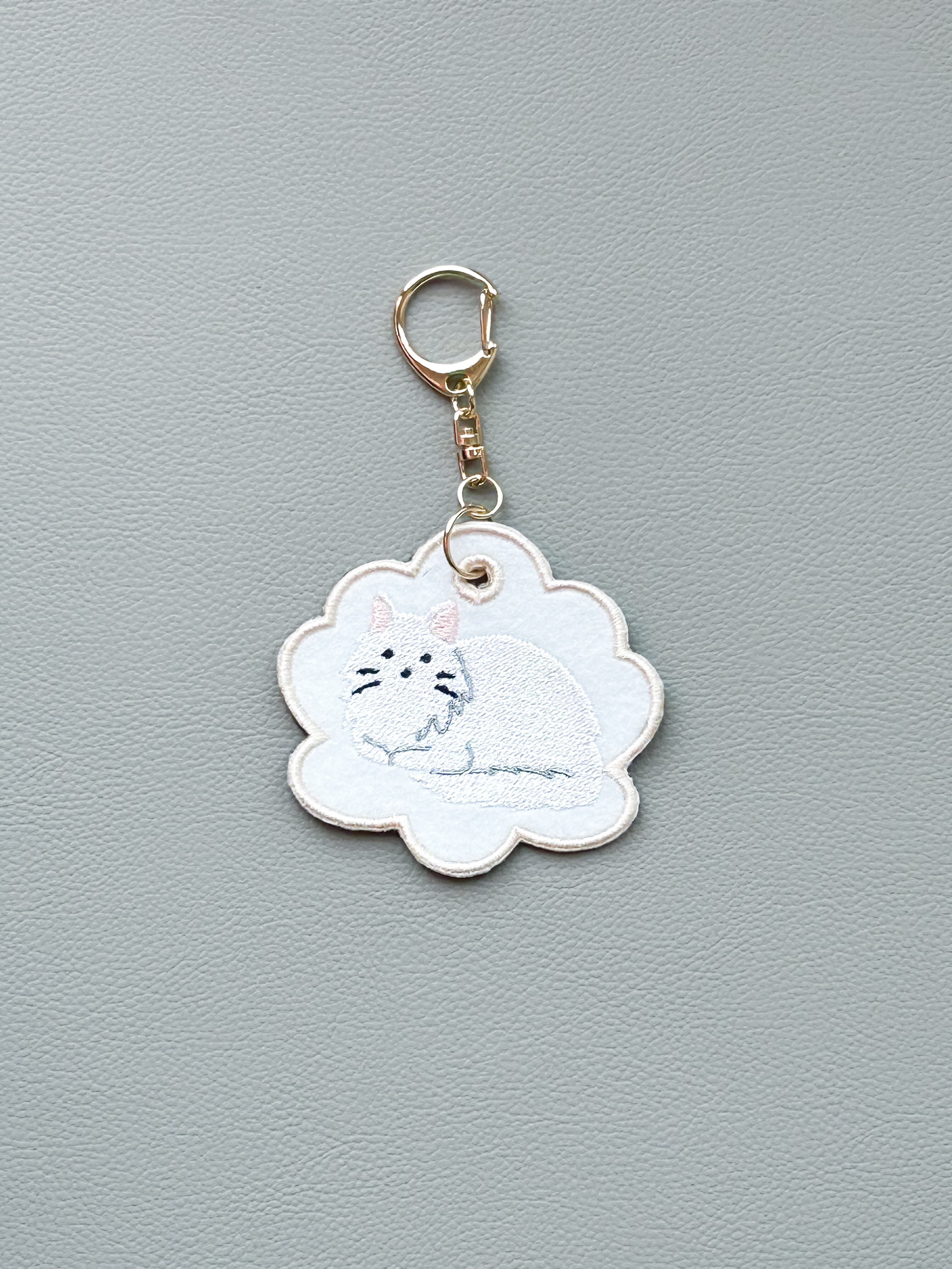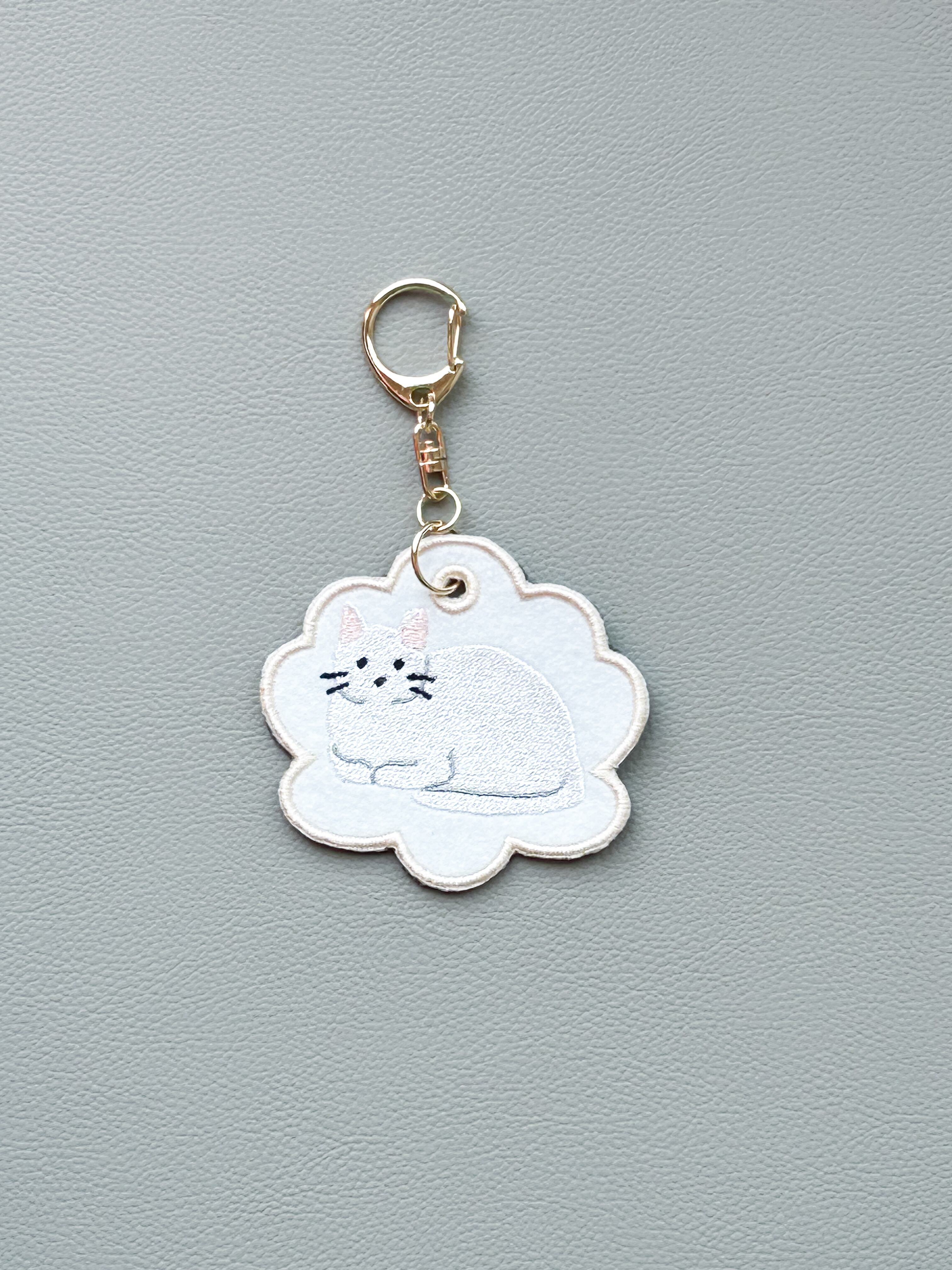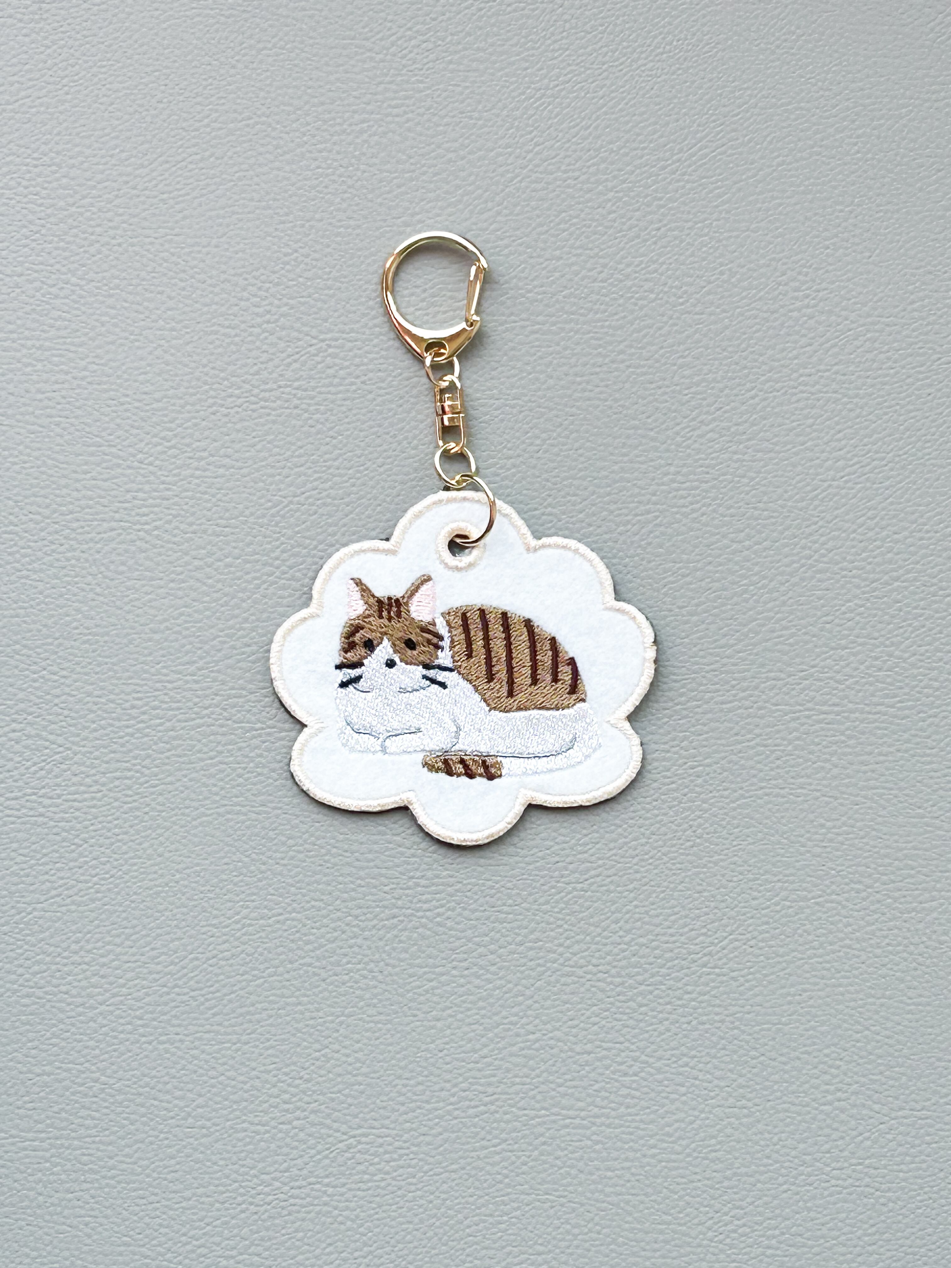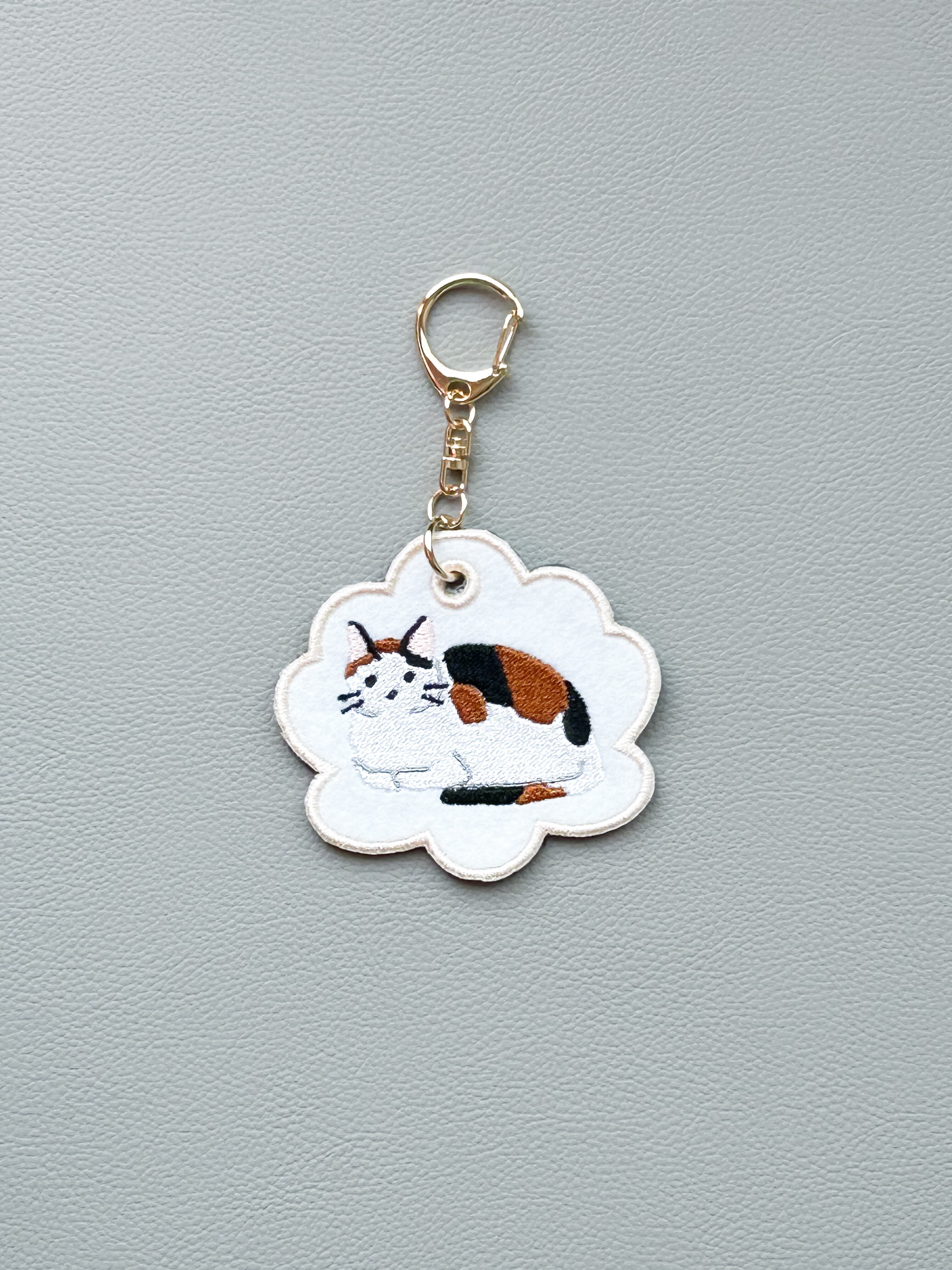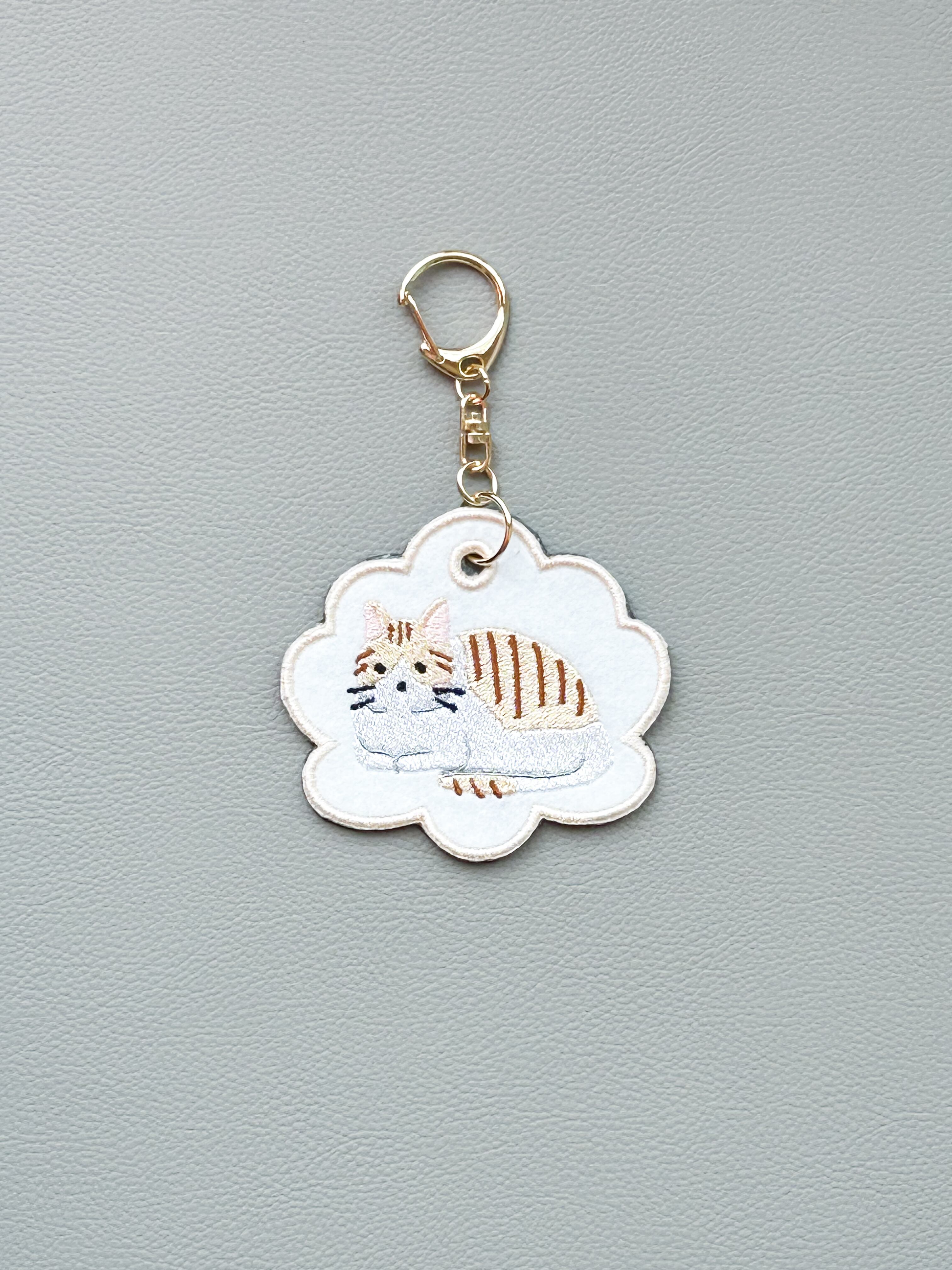 猫のモチーフを刺繍したシルエットキーホルダーです。