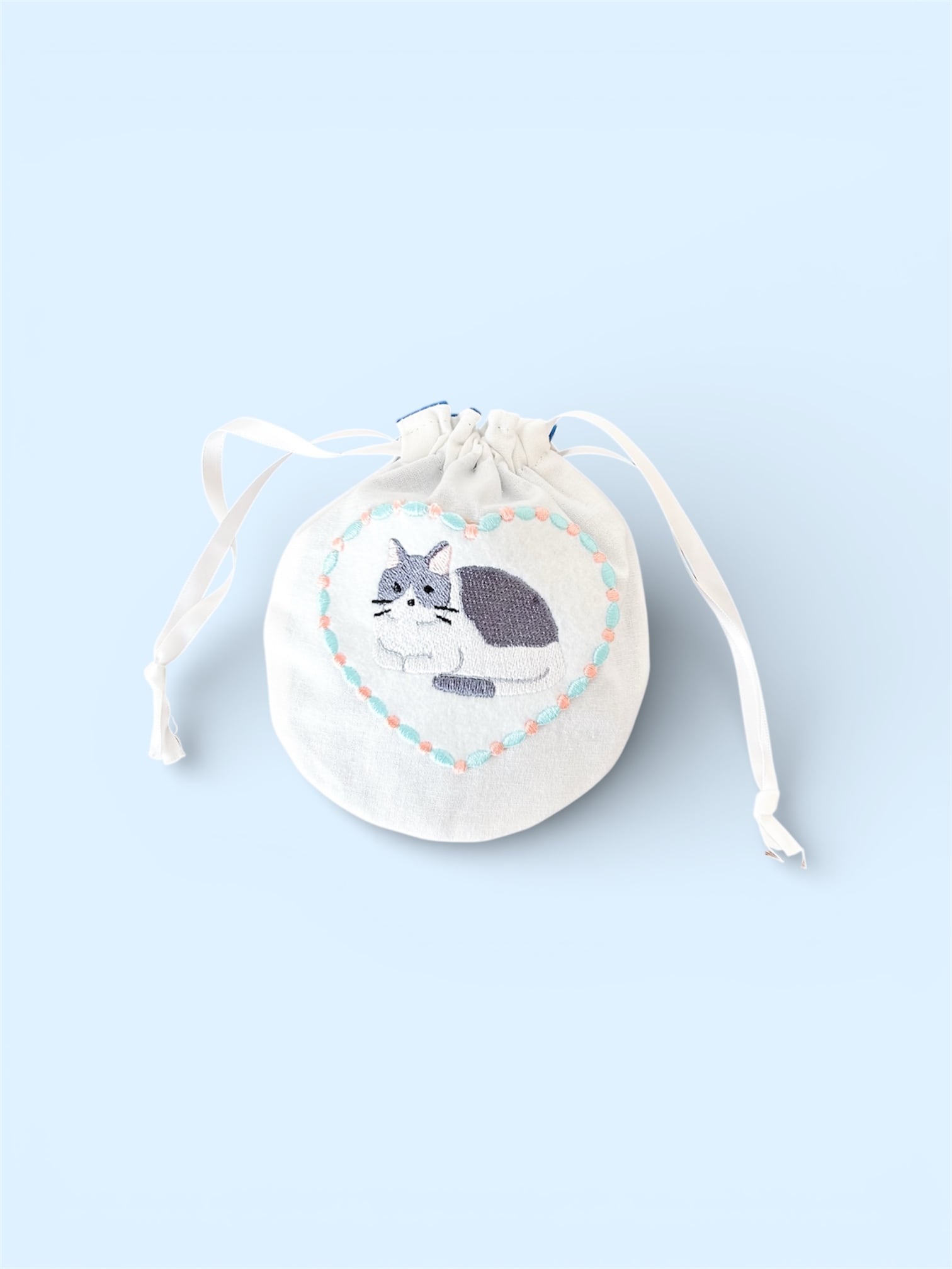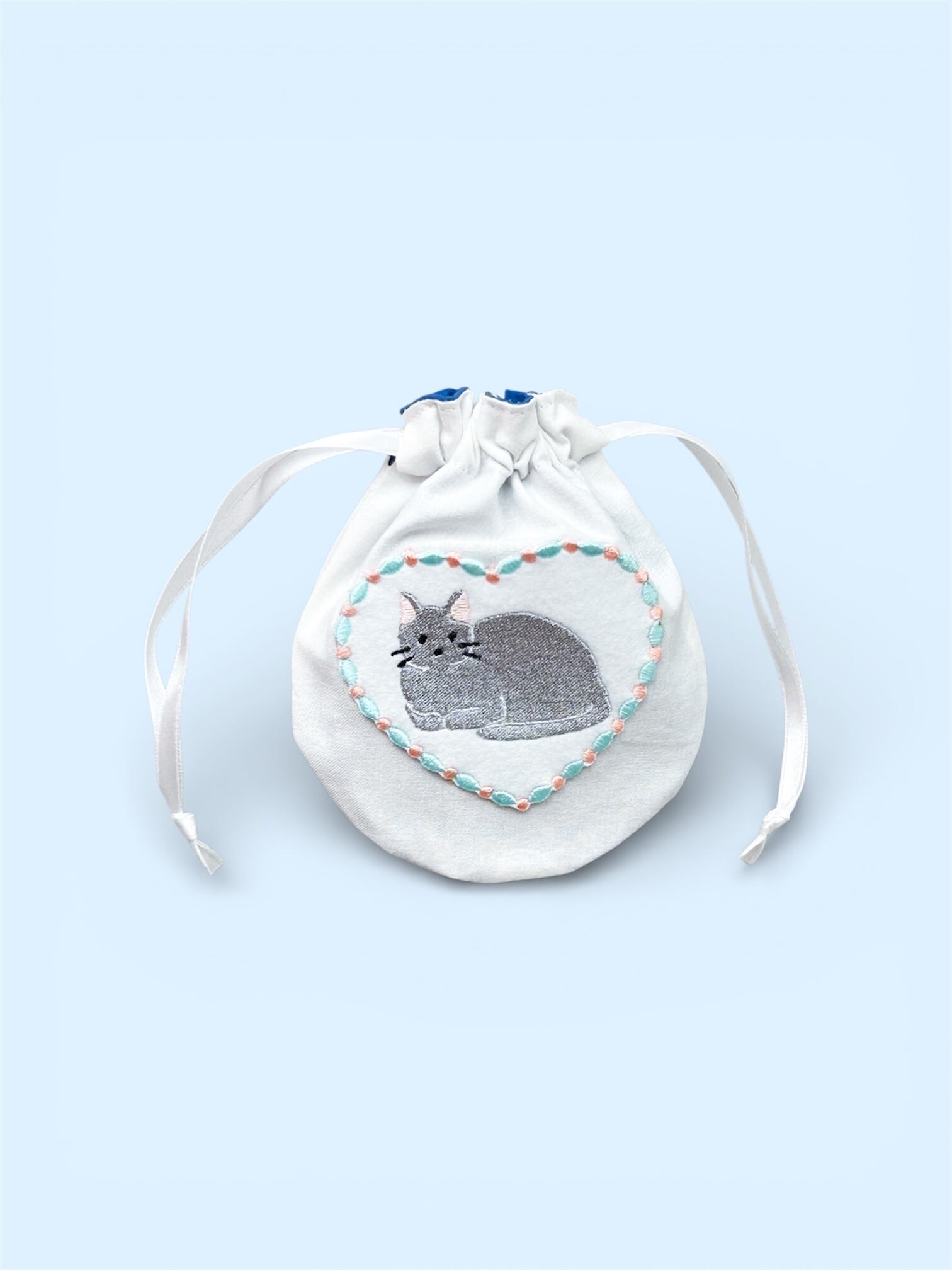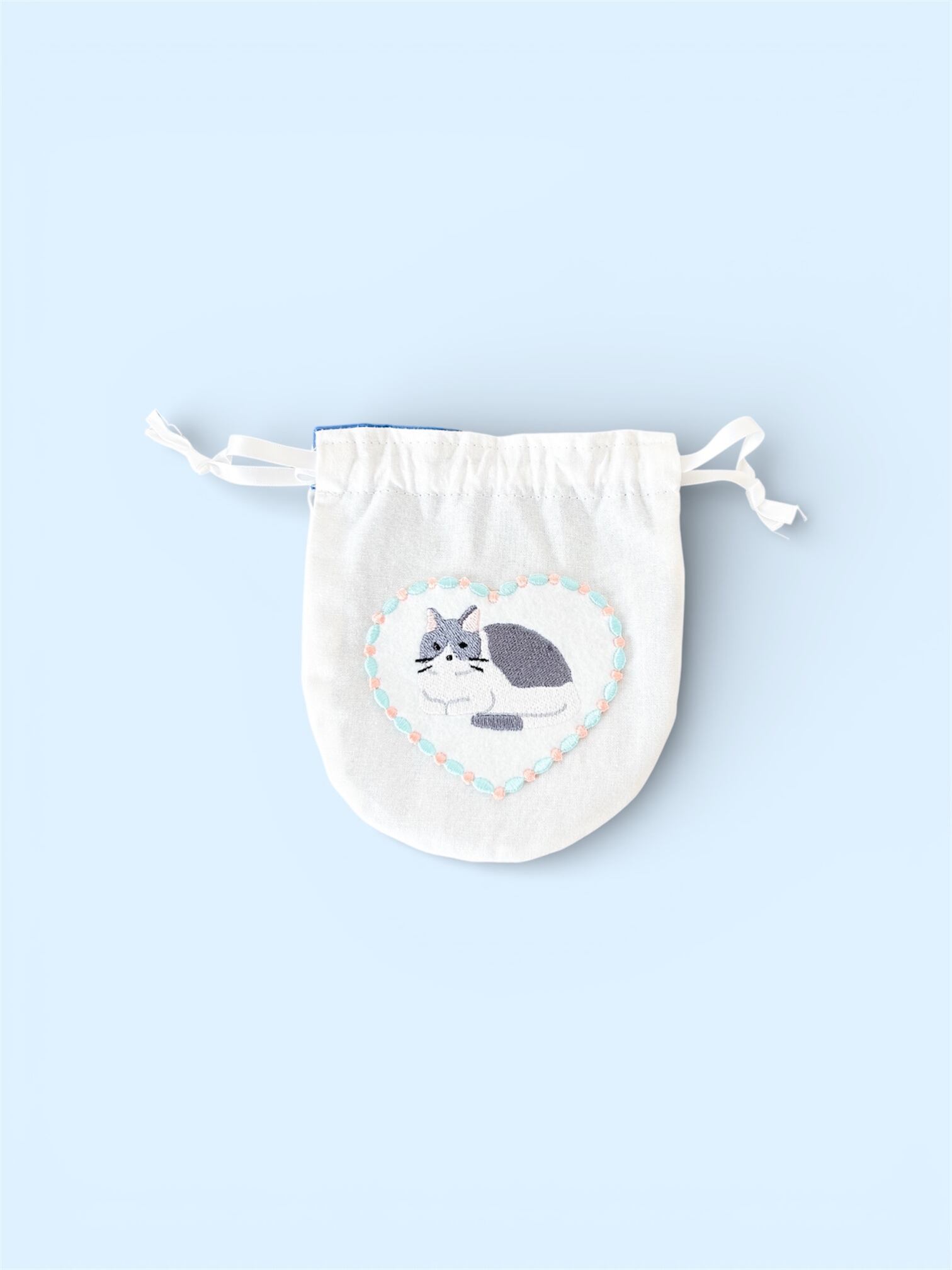 猫のアップリケがついた巾着ポーチです。