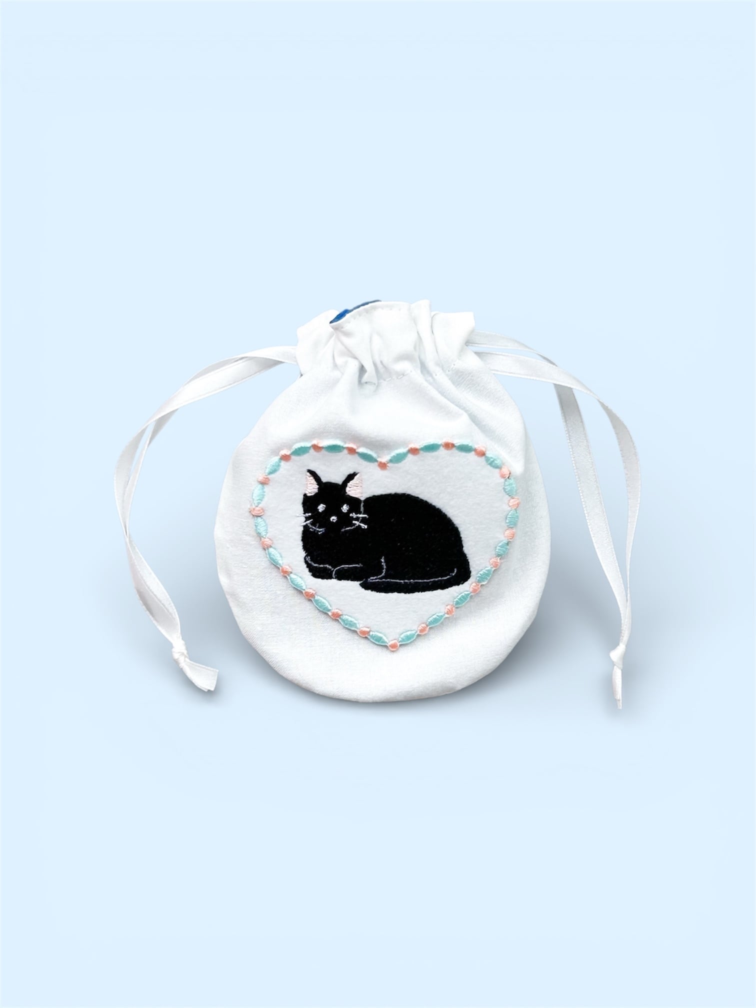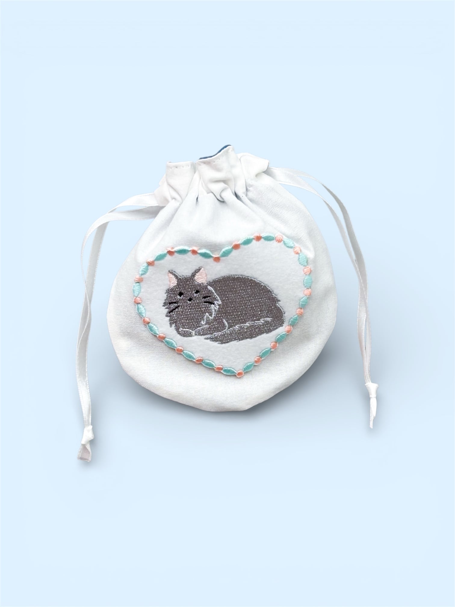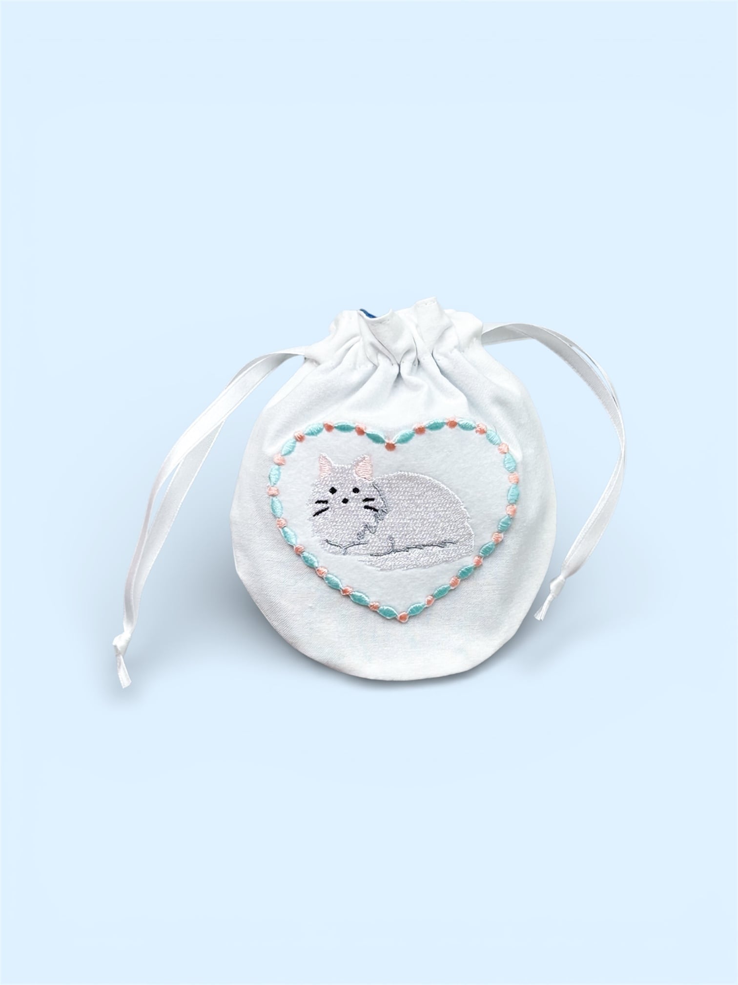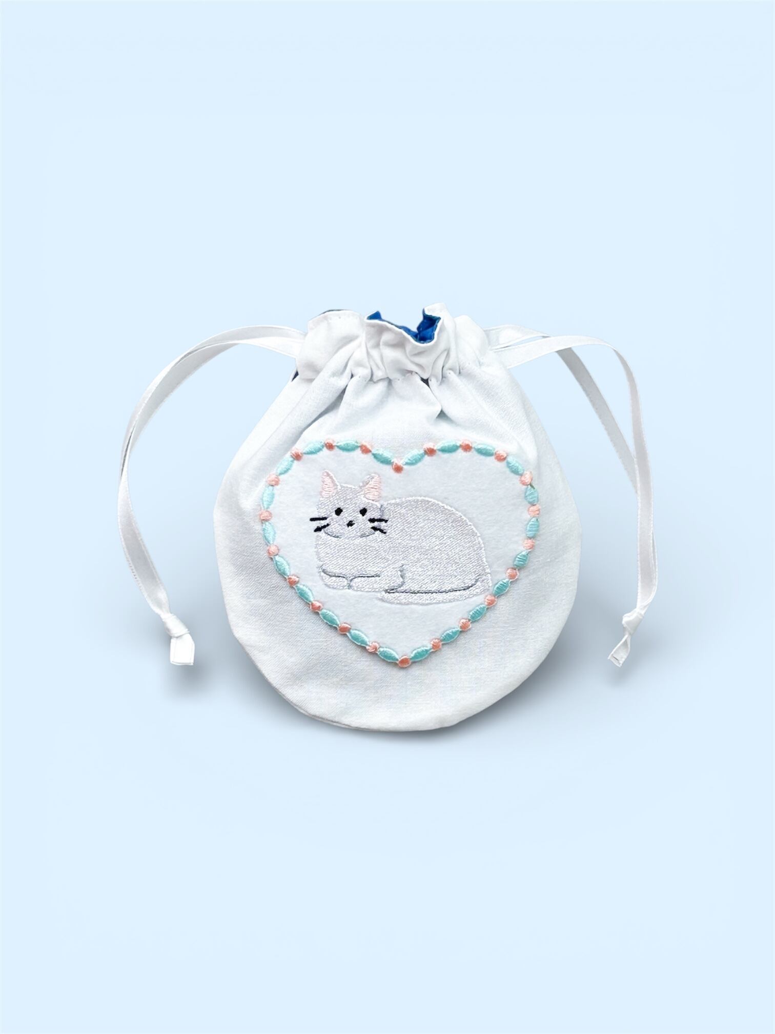 猫のアップリケがついた巾着ポーチです。