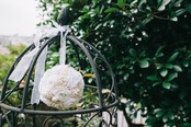 レース編みで作ったクロッシェフラワーモチーフを使用して作ったボールブーケです。