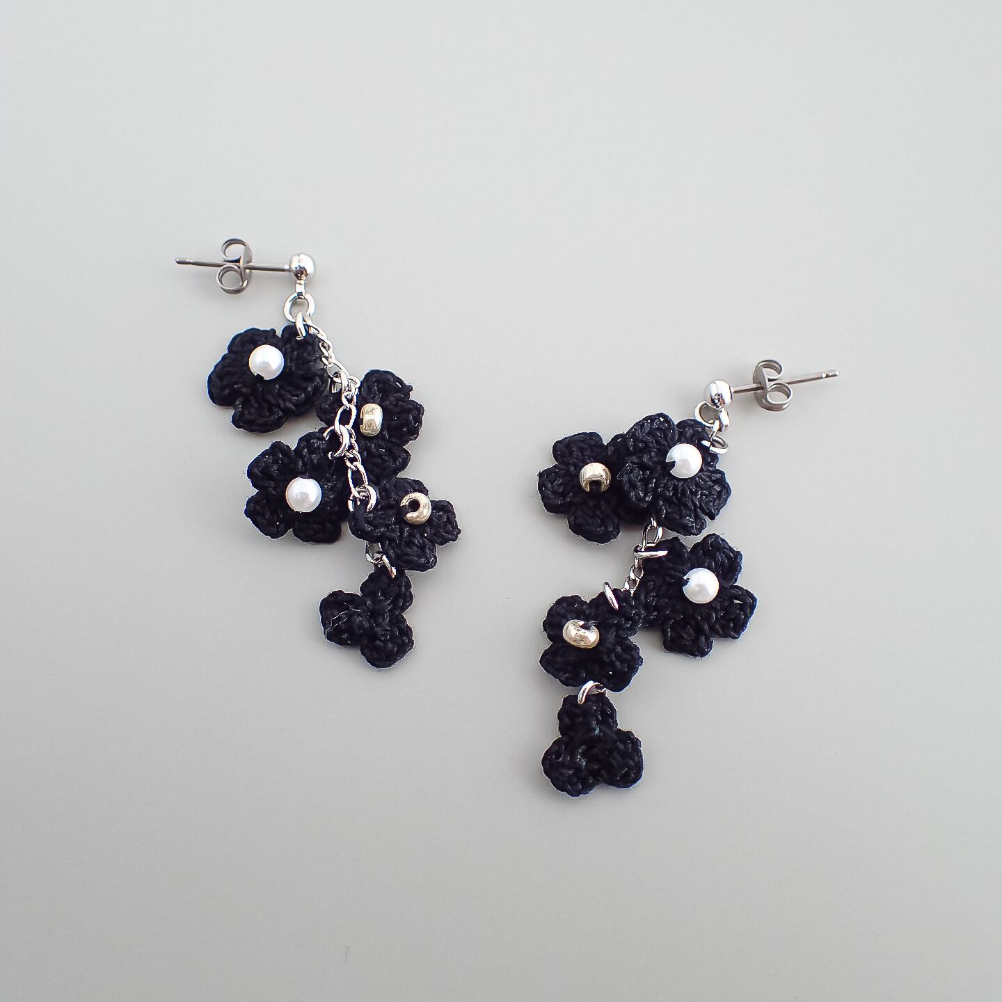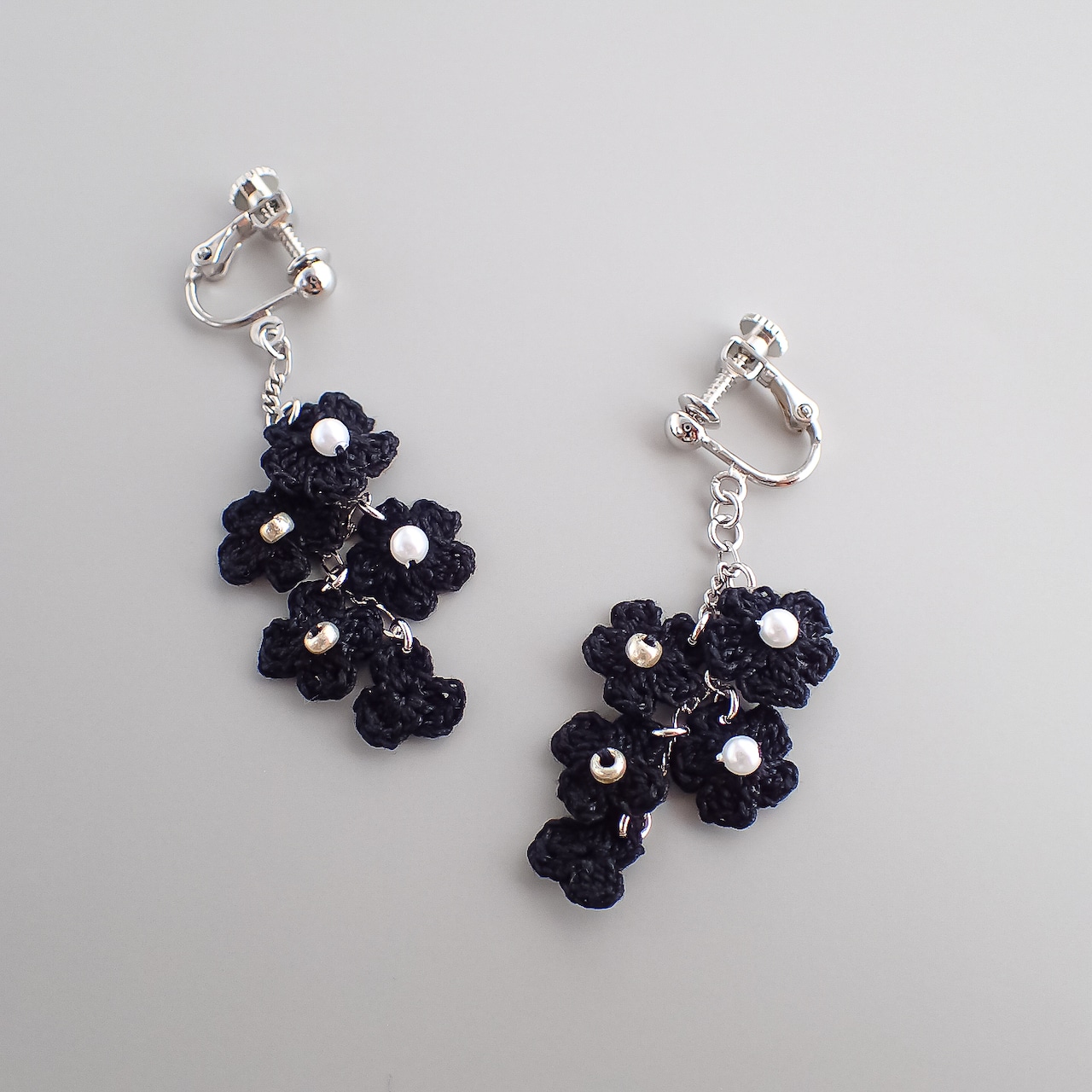 レース糸で編んだモチーフを集めたピアス/イヤリングです。