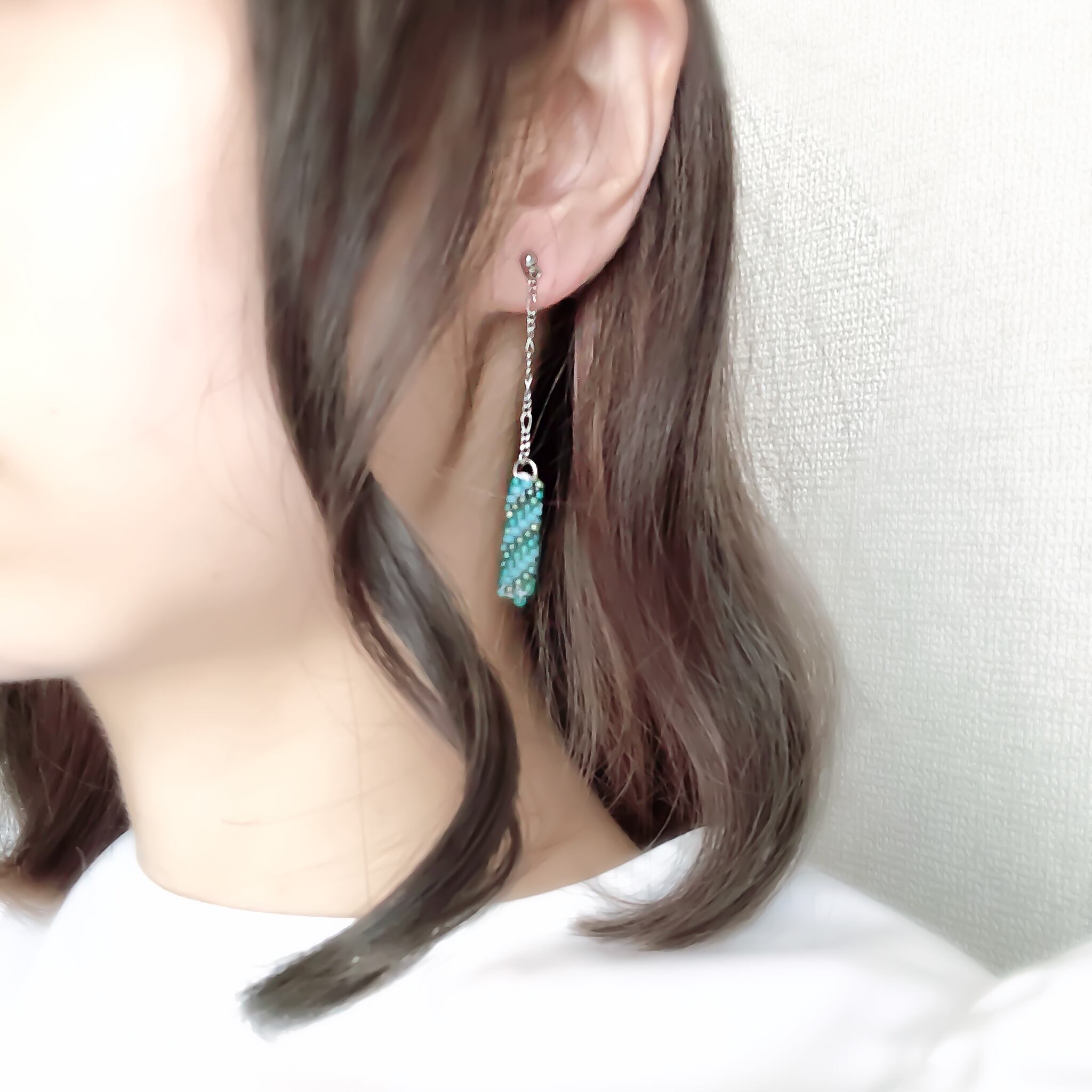 ビーズクロッシェで編んだピアス/イヤリングです。