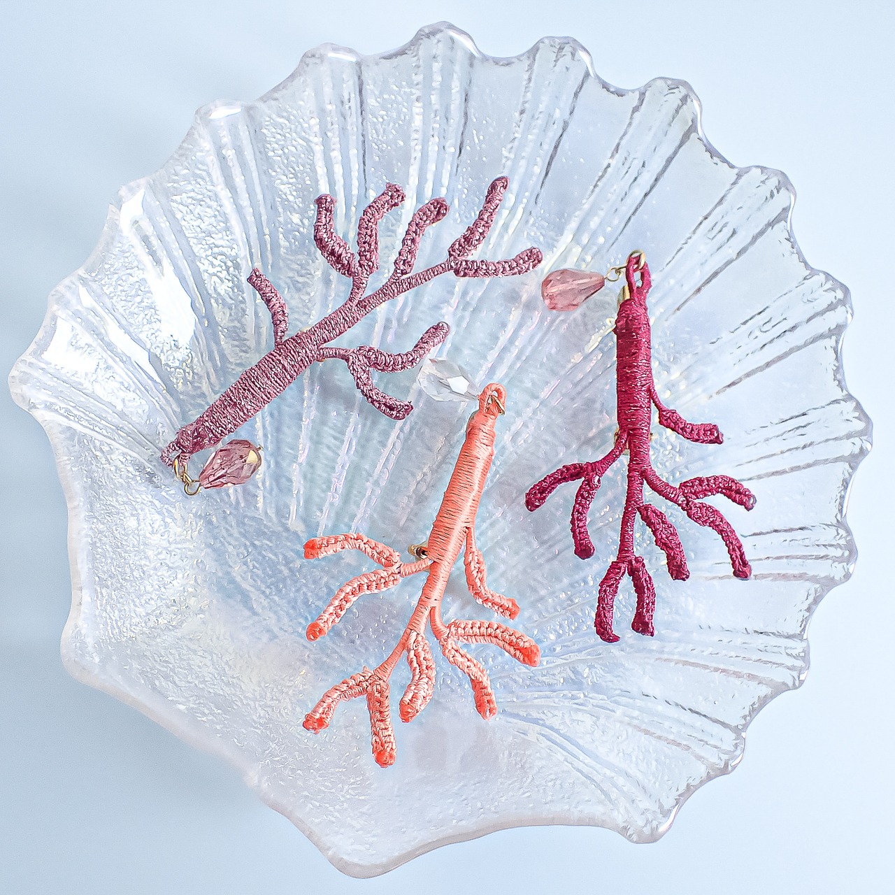 全て糸でお作りしているのでとっても軽く、お洋服につけても邪魔になりません。