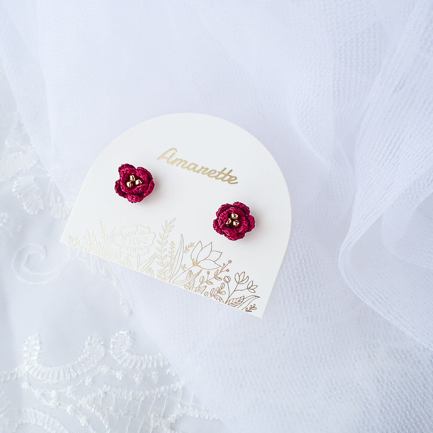 繊細な編み目が花のような美しさを引き立て、クロッシェ特有の温かみを感じることができます。