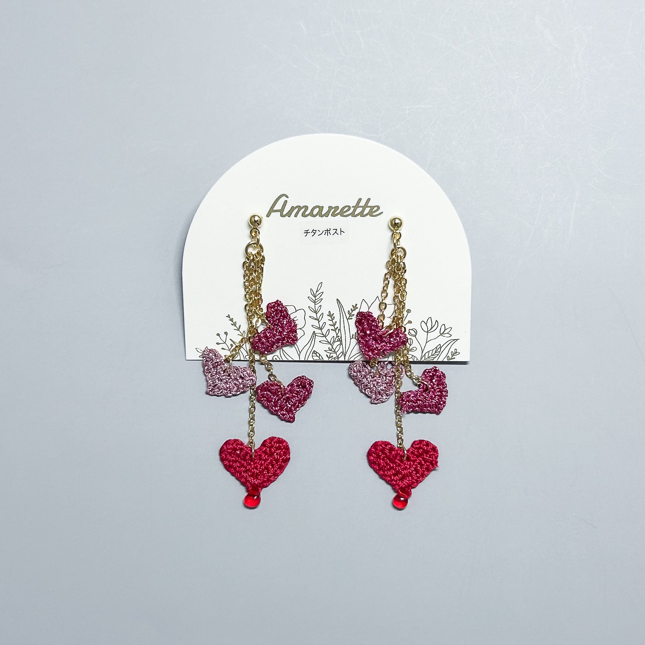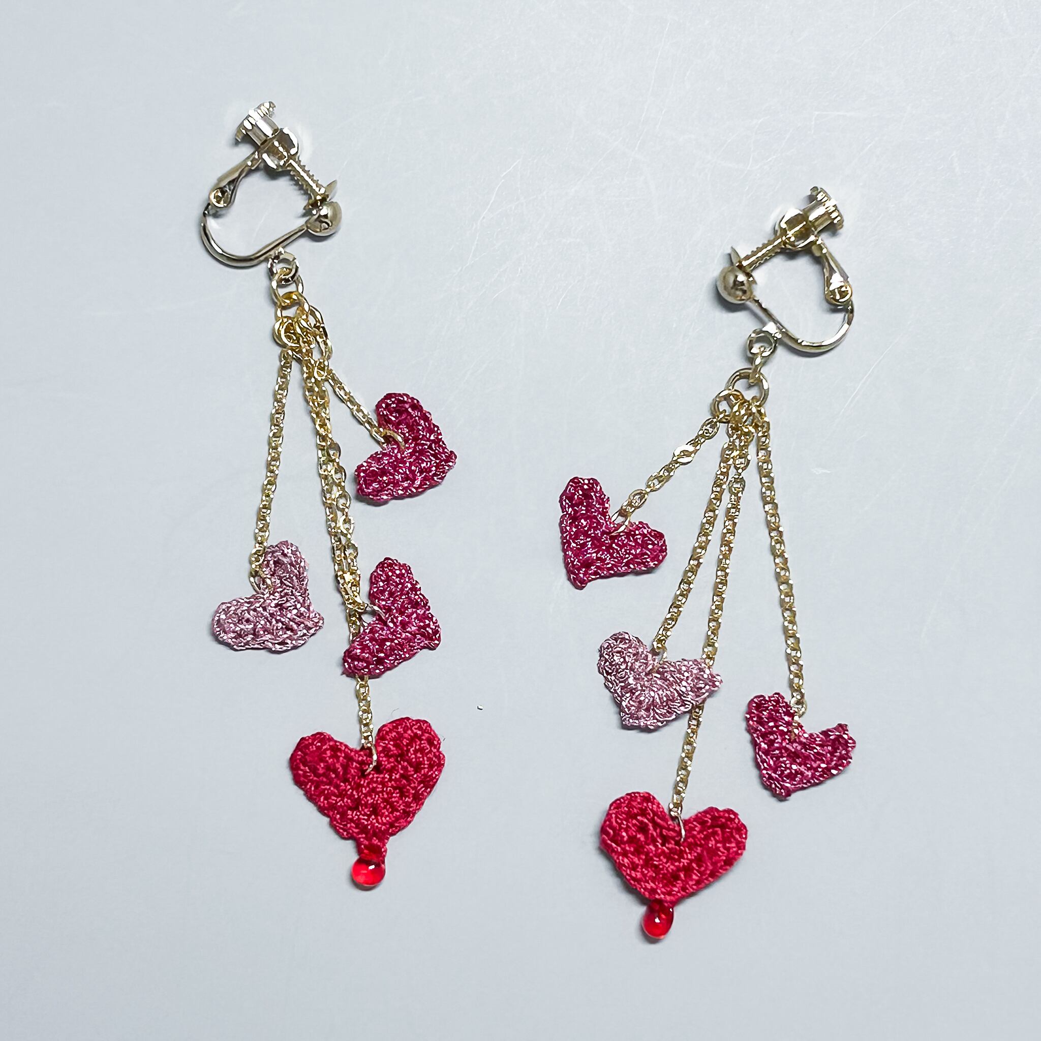 ラメ入りハートとドロップビース付きハートを組み合わせたデザインになっております。