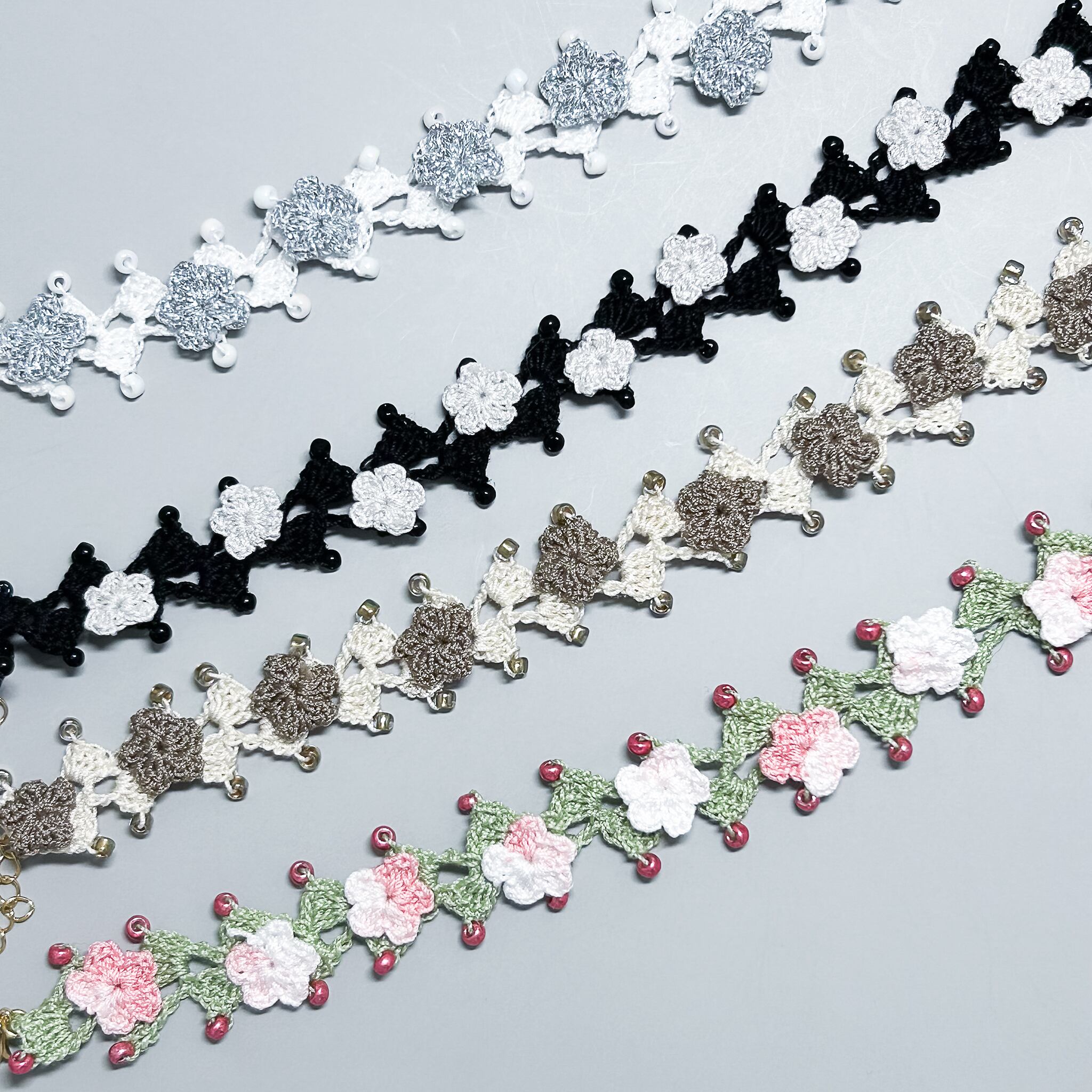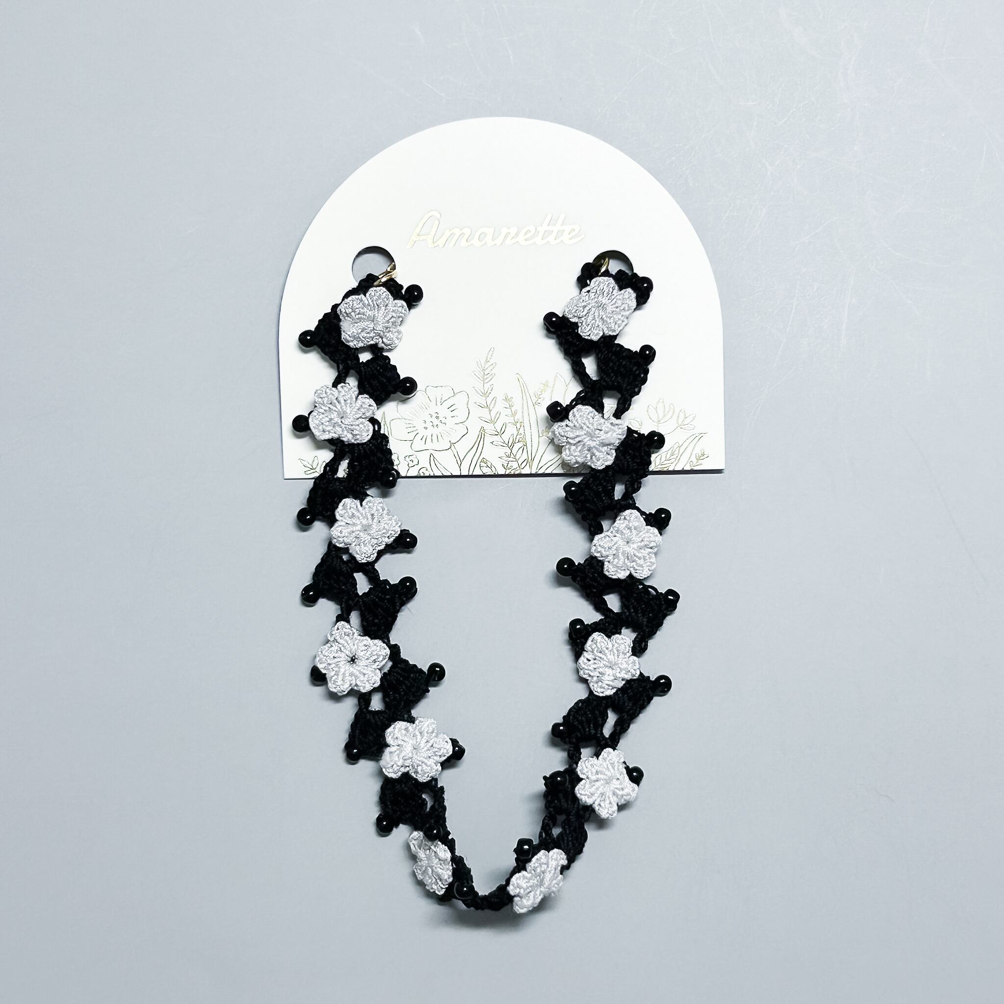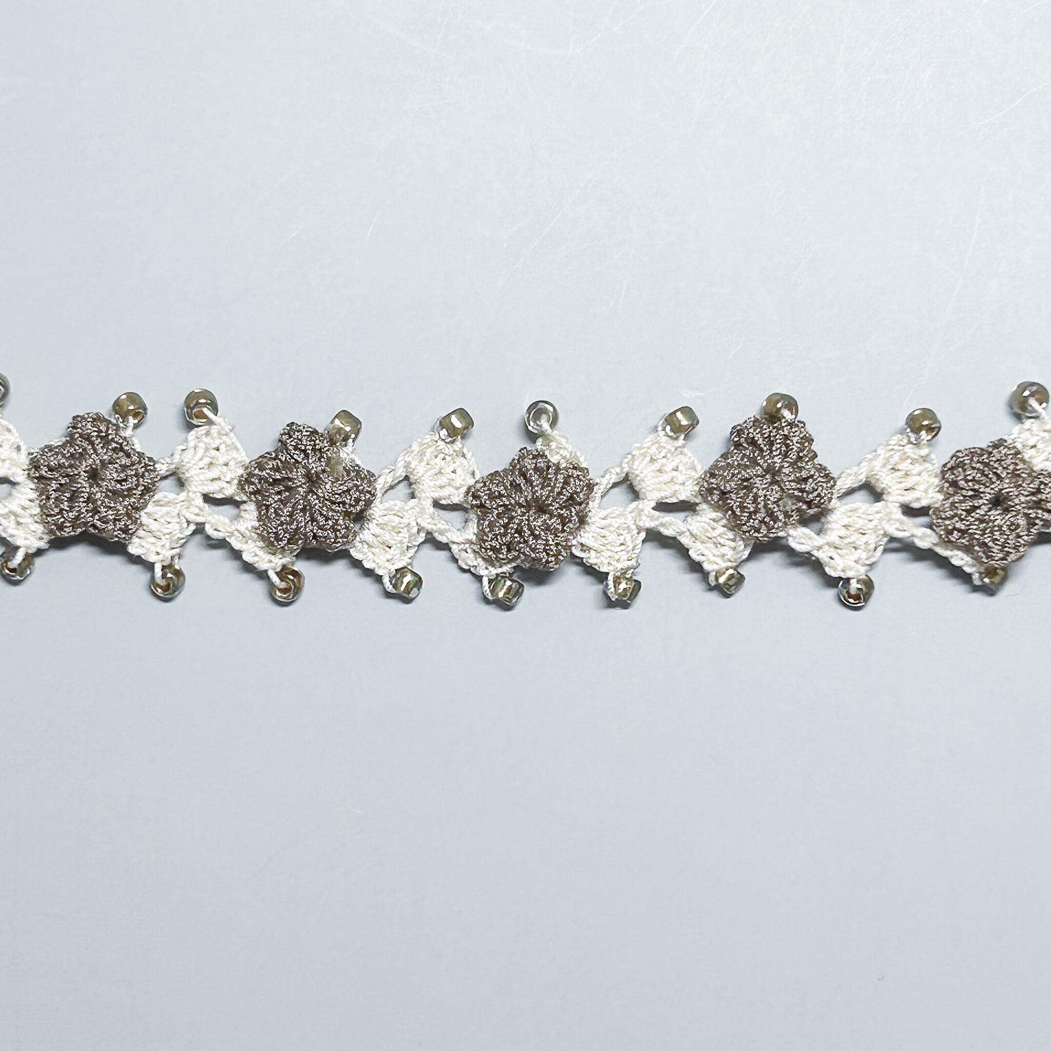 ビーズクロッシェとフラワーパーツを組み合わせたブレスレットです。