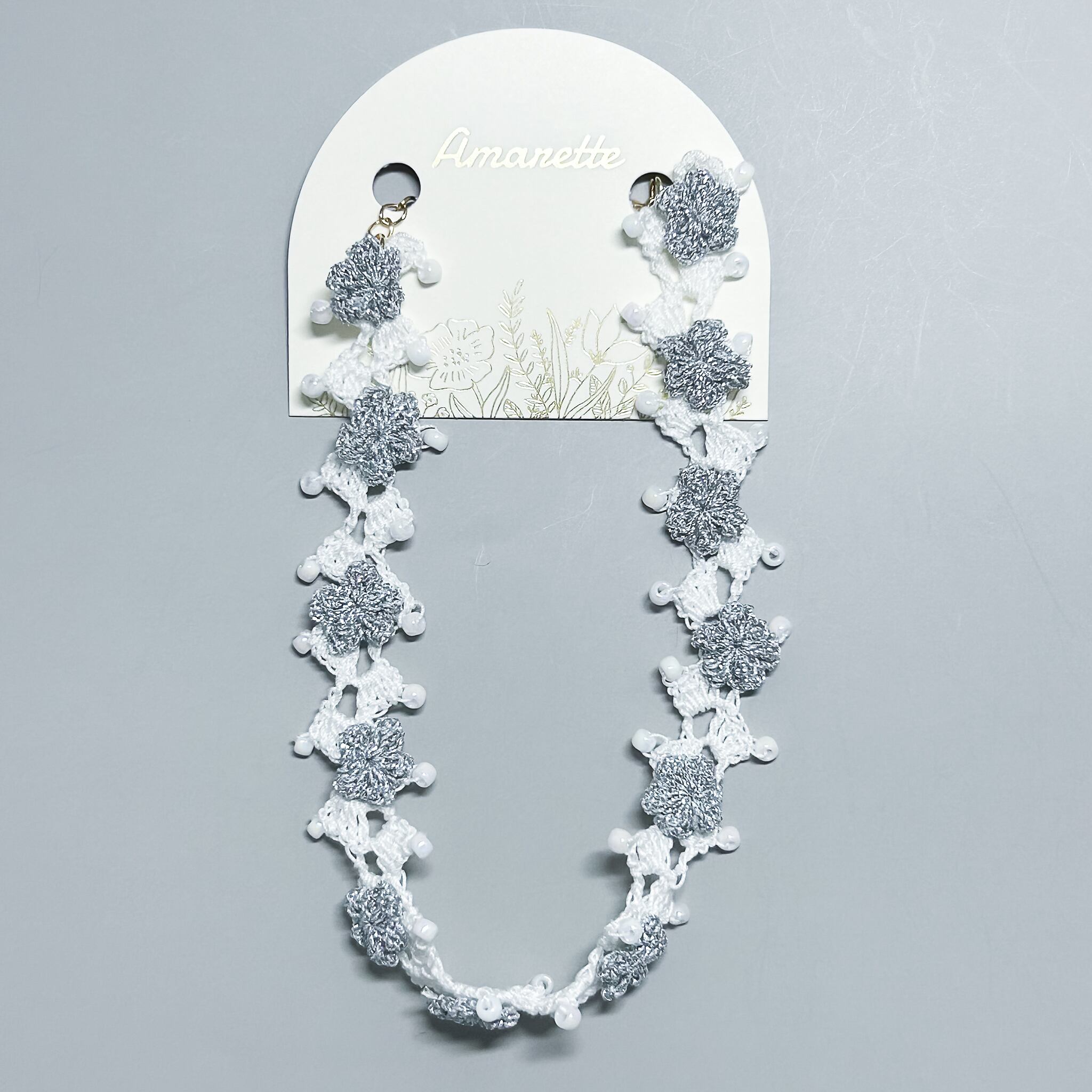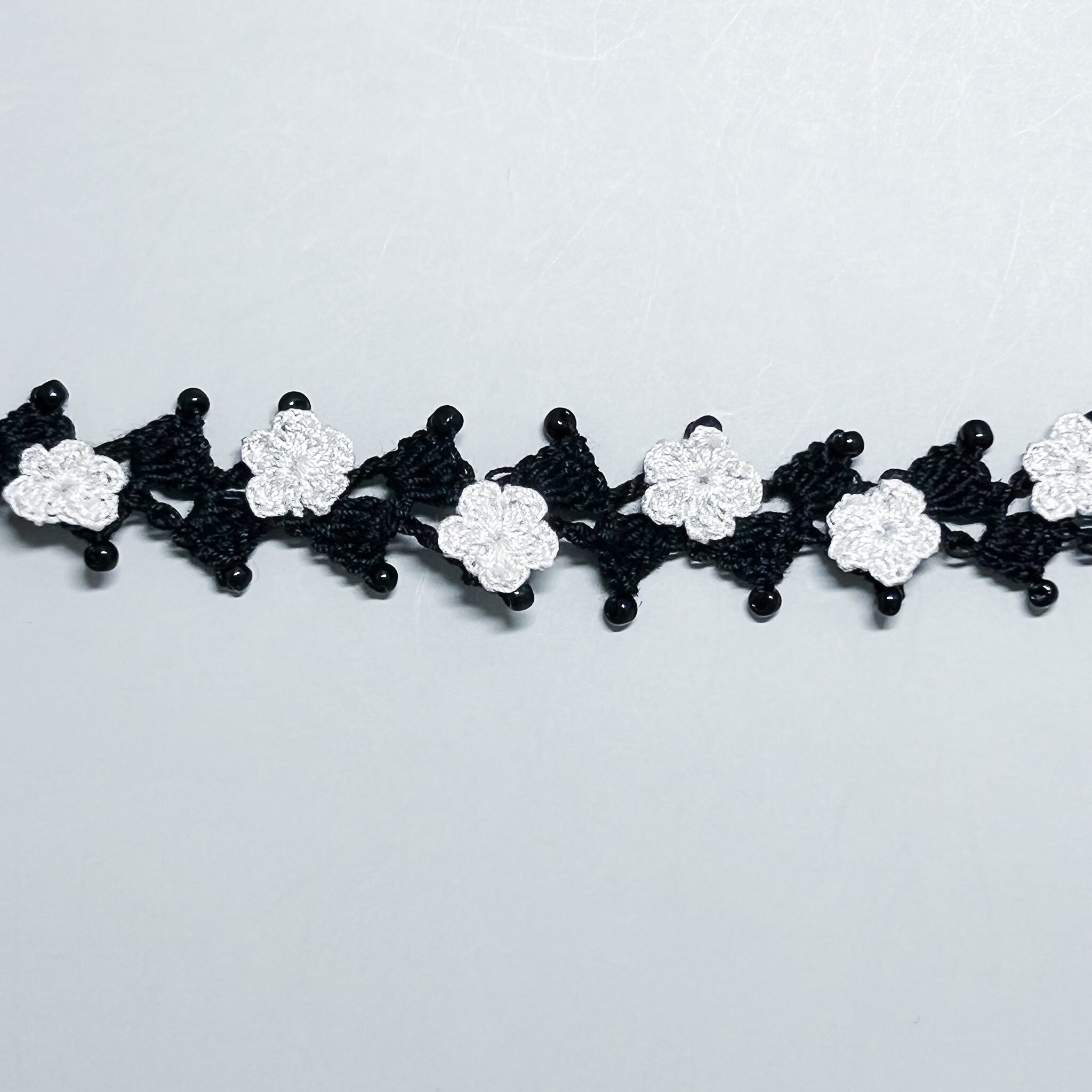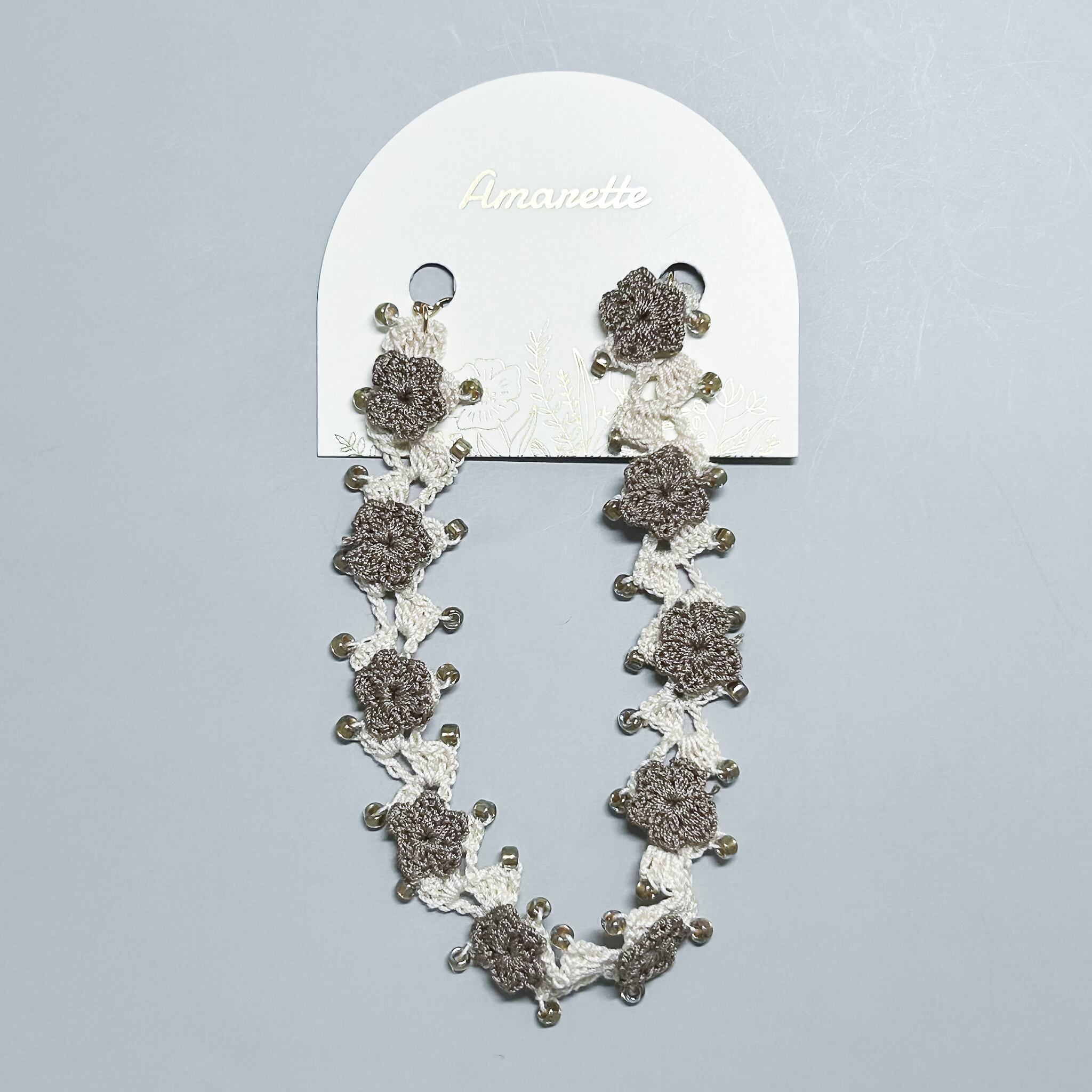 ビーズクロッシェとフラワーパーツを組み合わせたブレスレットです。